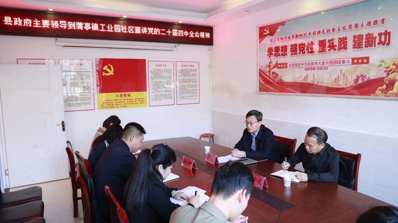 近日,县委副书记、县长杨帆到车桥镇城门村、蒲亭镇工业园社区宣讲党的二十届四中全会精神。他强调,要将学习宣传贯彻党的二十届四中全会精神作为当前和今后一个时期的一项重大政治任务,切实把思想和行动统一到习近平总书记重要讲话精神和全会部署上来,狠抓落实、久久为功,全力以赴推动“十四五”圆满收官、“十五五”谋篇布局,为德安高质量发展注入强大动力。