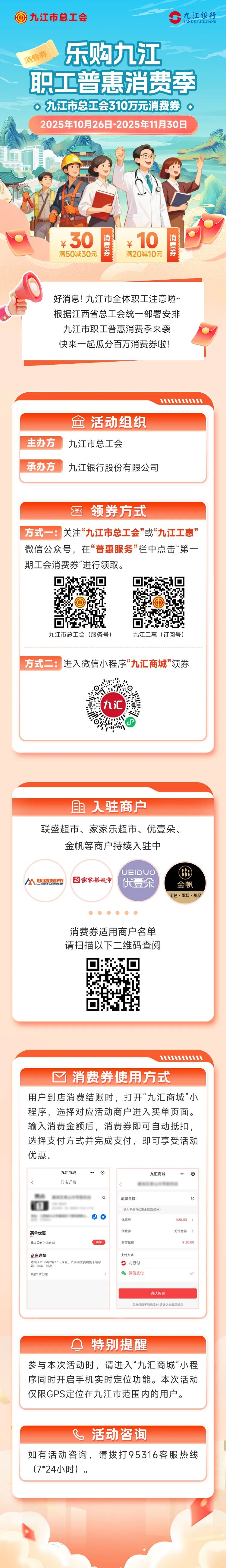 【小安说政事】@全体九江职工!工会消费券这样领、这样用,超详细指南来了!