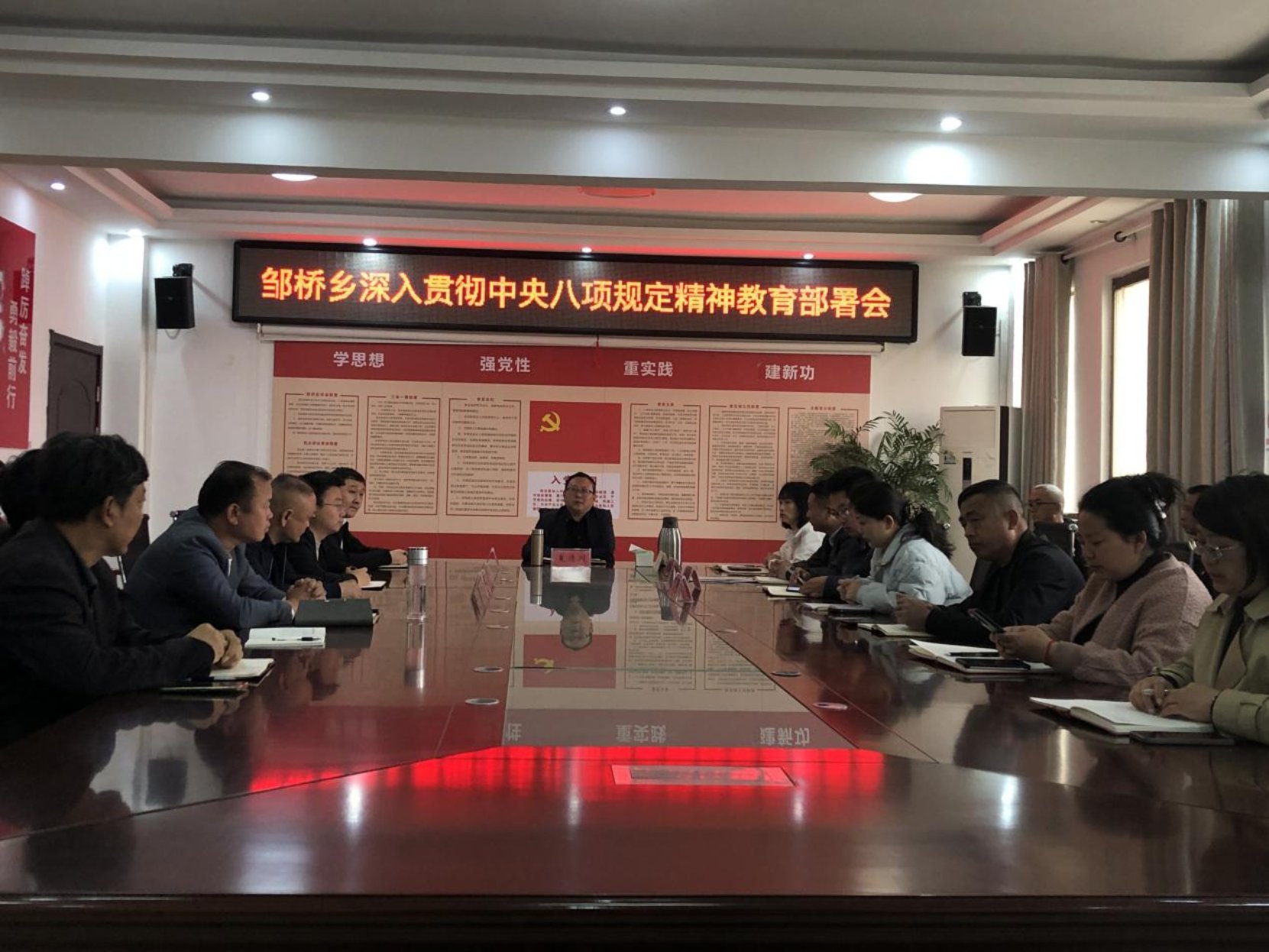 3月31日,邹桥乡召开深入贯彻中央八项规定精神学习教育传达学习会议,传达学习中央和省、市、县委关于在全党开展深入贯彻中央八项规定精神学习教育部署会议精神,并就全乡开展深入贯彻中央八项规定精神学习教育作动员部署。邹桥乡领导班子成员、村书记、第一书记及全体机关党员干部参加会议。