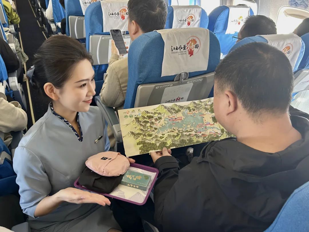 航班不只是交通工具,更是一场别开生面的文旅盛宴!庐山、庐山西海风景区的文旅推介官轮番登场,用生动的讲解,带旅客领略“匡庐奇秀甲天下”的人文意境与生态之美,感受“天上云居 诗画西海”的绝美风光。从云雾缭绕的山峰到星罗棋布的岛屿,从千年古刹的钟声到碧波荡漾的湖水,九江的每一面都令人着迷。