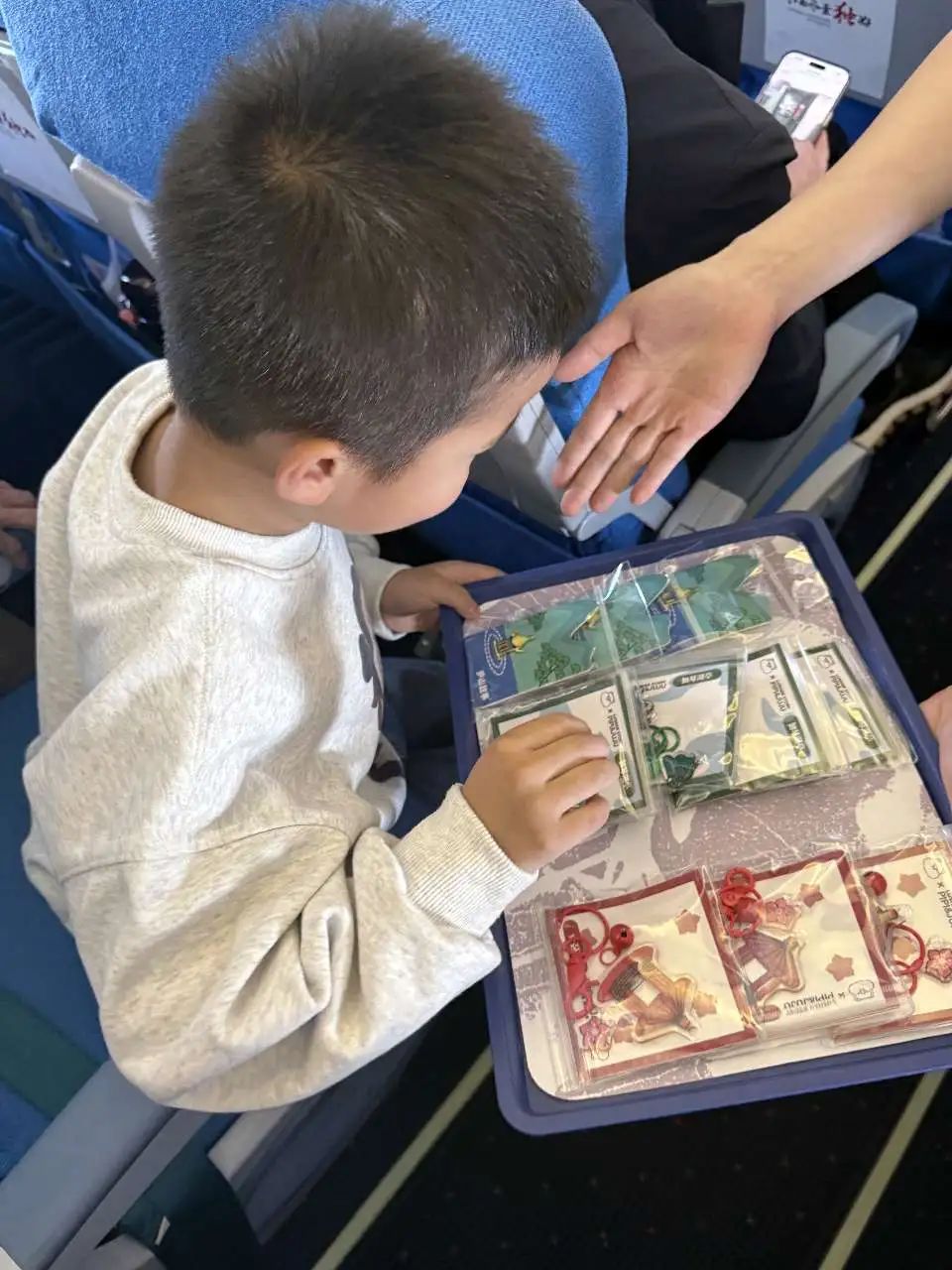 除了精彩的讲解,航班上还准备了超有趣的有奖问答环节!围绕庐山诗词、庐山西海风光等推介内容,一道道趣味问题抛出,旅客们纷纷举手抢答,现场气氛热烈非凡。手机链、书签、冰箱贴等精美文创礼品,不仅是一份纪念,更承载着九江的热情邀约。