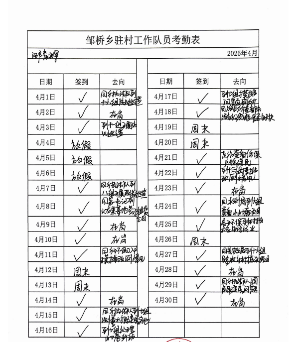 2025年度驻村干部考勤表