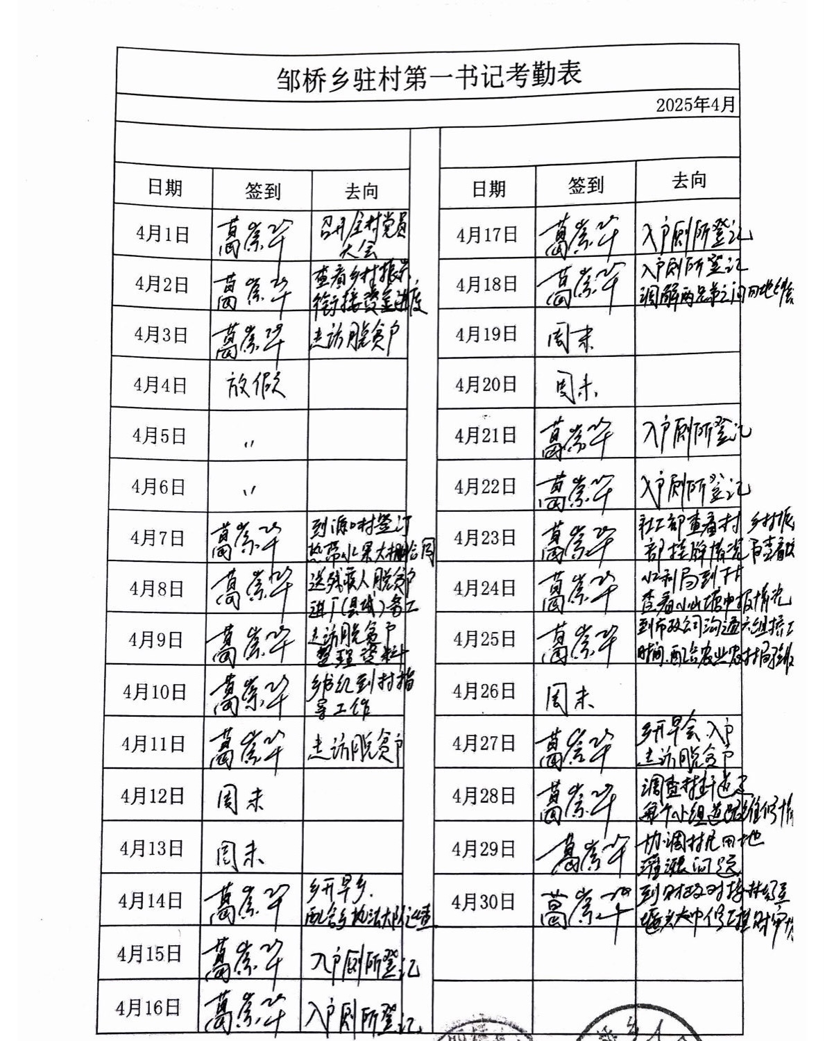 2025年度驻村干部考勤表