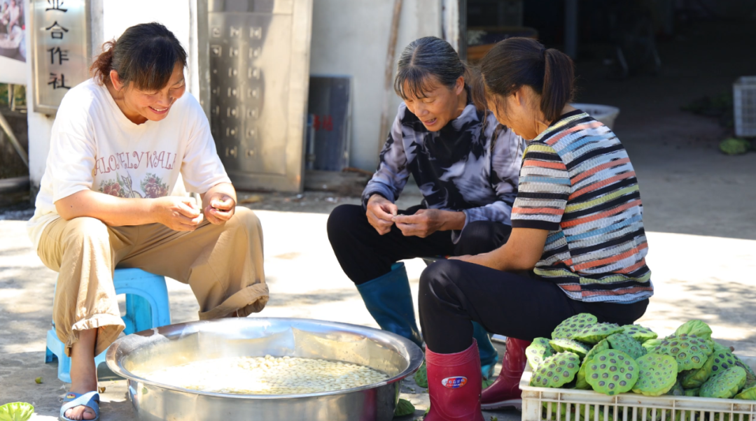 在合作社的加工车间里,同样是一派忙碌景象。新鲜莲蓬经过分拣、剥壳、去芯等一系列工序后,被送入烘干设备进行处理。除了莲子本身,合作社还对相关产品进行深加工,开发出藕粉、荷叶茶、莲子心茶以及莲子酒等多种产品,并通过 “银莲” 商标进行统一销售。合作社的直播间里更是热闹非凡,主播们热情地向网友介绍着产品。