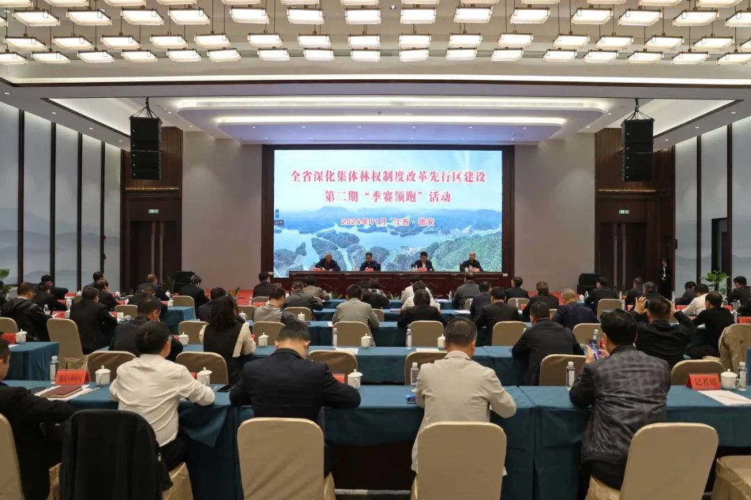 11月14日,江西省深化集体林权制度改革先行区建设“季赛领跑”活动在德安县举行并召开现场交流会。省林业局党组成员、副局长杨皓出席会议并讲话,县委书记艾菲出席会议并致辞,省林业局政策法规和林业改革处处长李俊文、省林业经济发展中心主任谌晓辉出席会议。