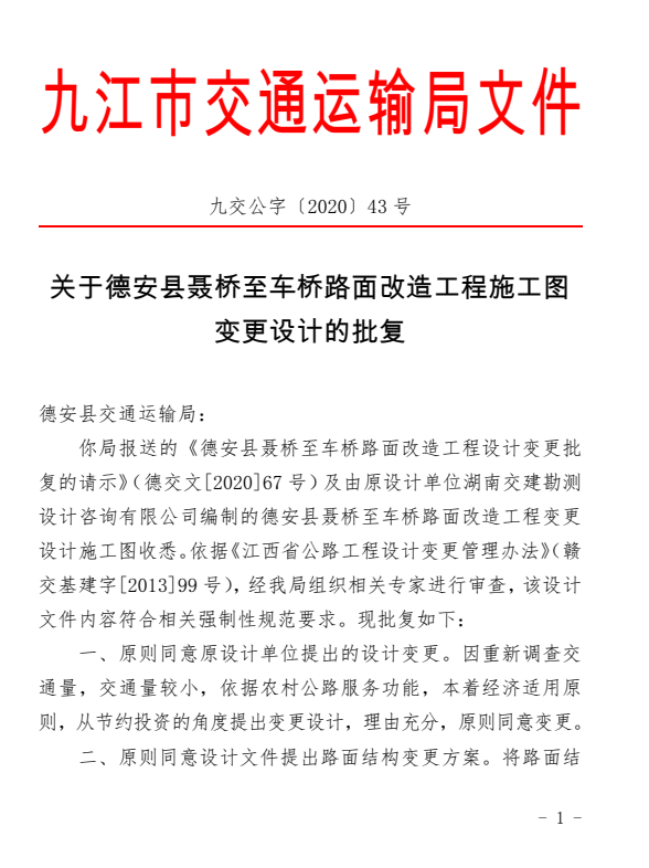 德安县聂桥至车桥路面改造工程施工图变更设计