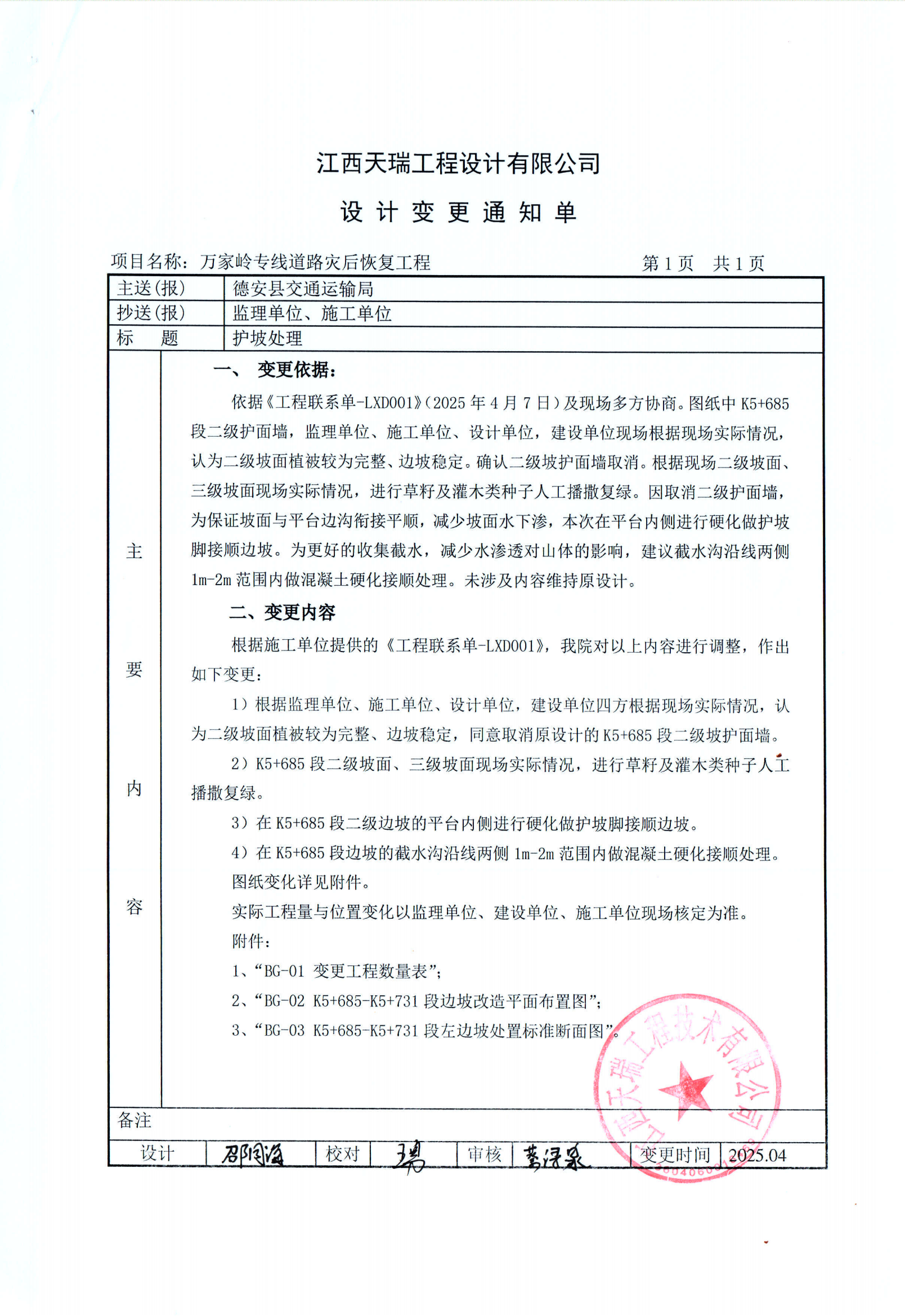 德安县万家岭专线公路灾后恢复工程设计变更资料