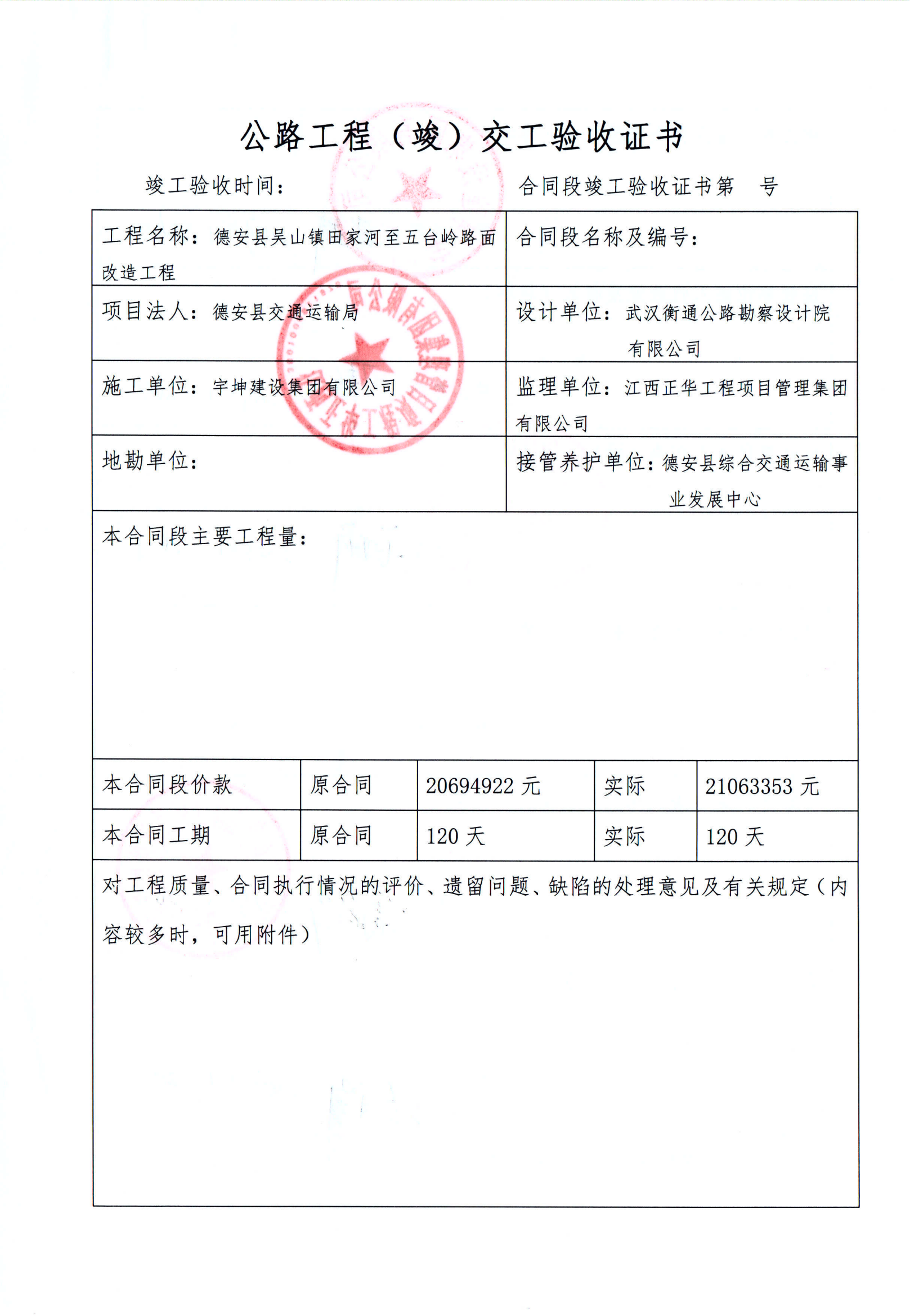 德安县吴山镇田家河至五台岭路面改造工程交工验收资料