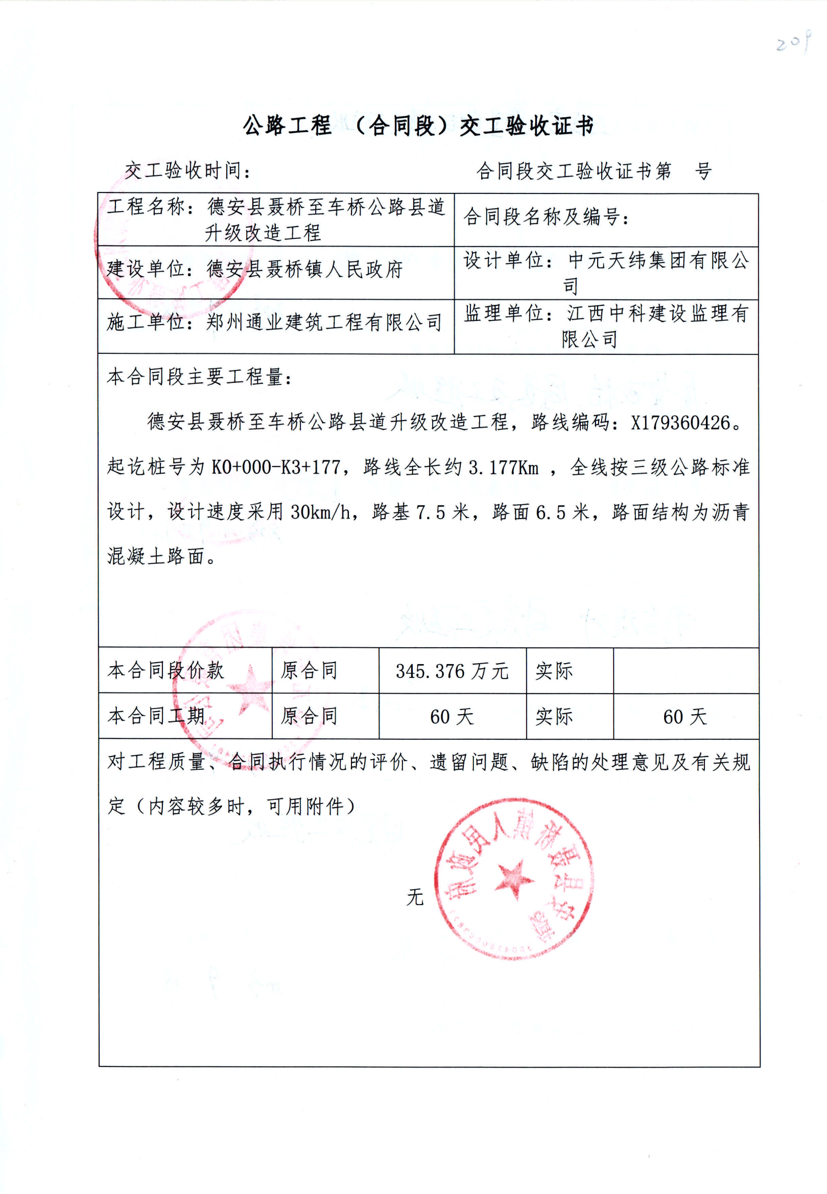 德安县聂桥至车桥公路县道升级改造工程项目交工验收资料
