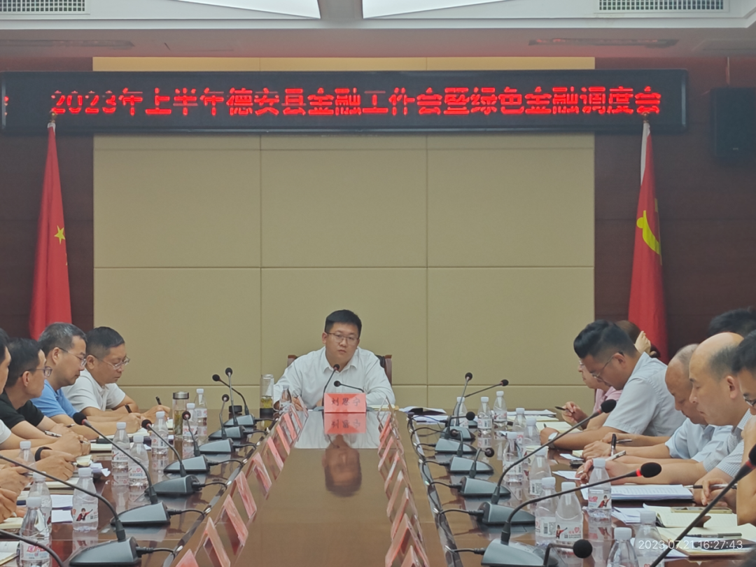 7月21日下午,县政府副县长刘思宁主持召开2023年上半年德安县金融工作会暨绿色金融调度会。县金融服务中心、中国人民银行德安县支行、九江银保监分局德安监管组、县内10家银行机构及12家保险机构主要负责同志参加会议。