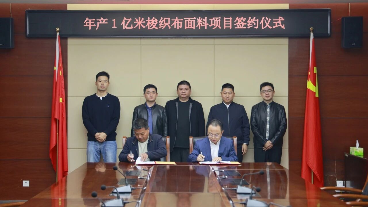 10月29日,年产1亿米梭织布面料项目签约落户我县,县政府副县长郑鹏代表政府与企业签约。