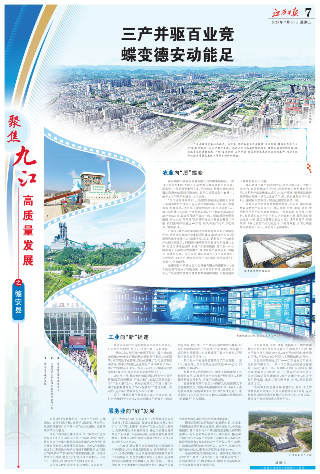 走在高质量发展新征程上,德安正以现代农业的“质”、新型工业的“新”、现代服务业的“好”,在创新中前行,在蝶变中奋进,继续书写县域经济社会高质量发展的精彩答卷。