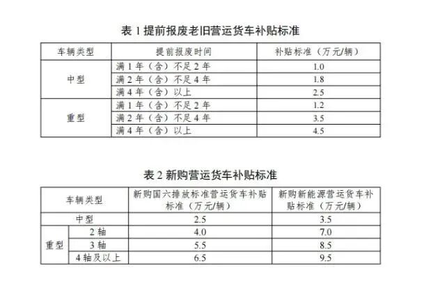 交通运输部、国家发展改革委、财政部发布《关于实施老旧营运货车报废更新的通知》。《通知》指出,对提前报废老旧营运货车、提前报废并更新购置国六排放标准货车或新能源货车、仅新购符合条件的新能源货车,按照报废车辆类型、提前报废时间和新购置车辆动力类型等,实施差别化补贴标准。其中,仅新购新能源城市冷链配送货车补贴标准为3.5万元/辆。补贴政策实施期限至2025年12月31日。