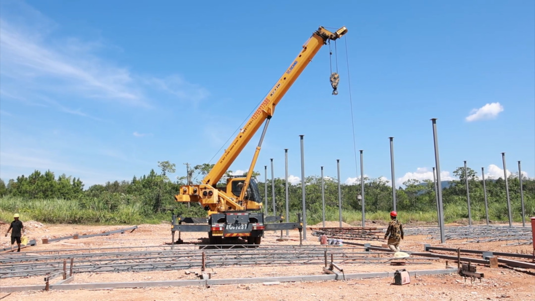 车桥镇车桥村党支部书记兼主任吴道强介绍道,厂房主要用于高分子材料生产,目前厂房完成了地基平整、地脚承台预埋,现在正在进行厂房主件吊装,预计9月底全面完工,全面投产后,有助于增加村集体经济收入,带动村民就业增收。