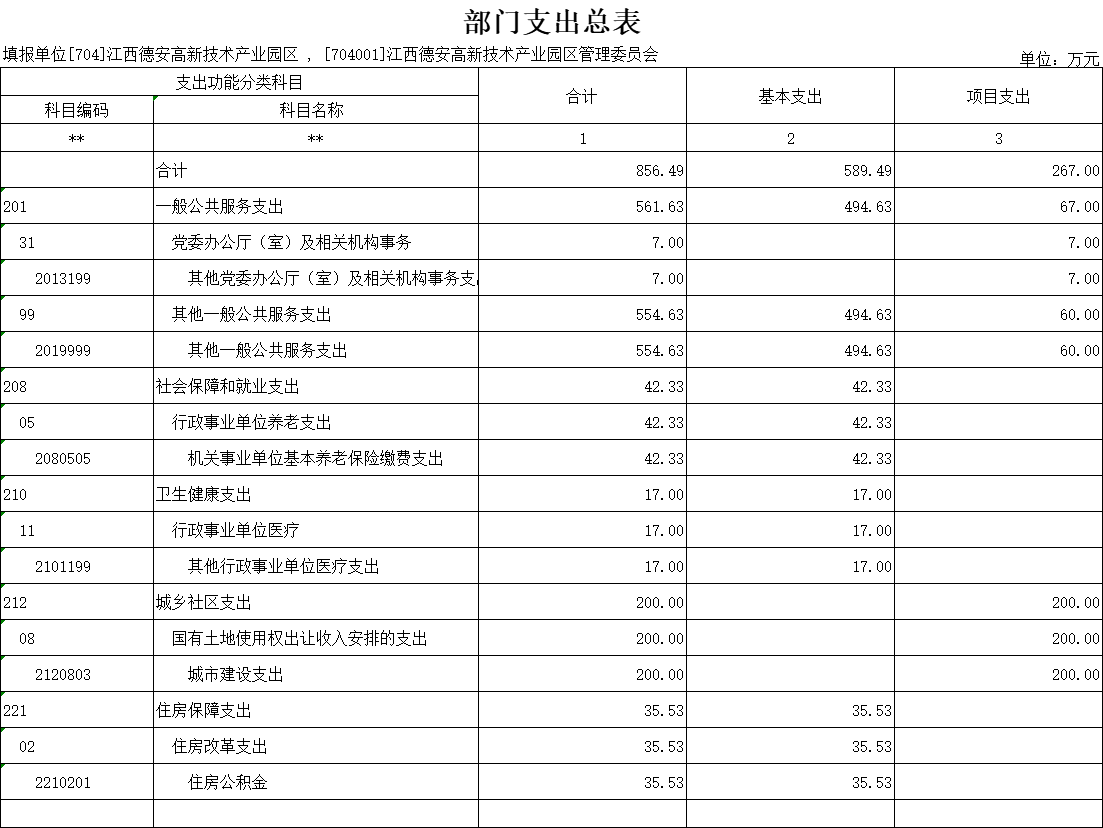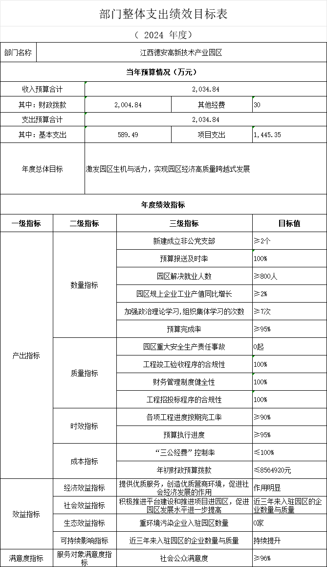 一级项目:江西德安高新技术产业园区管理委员会部门整体支出项目