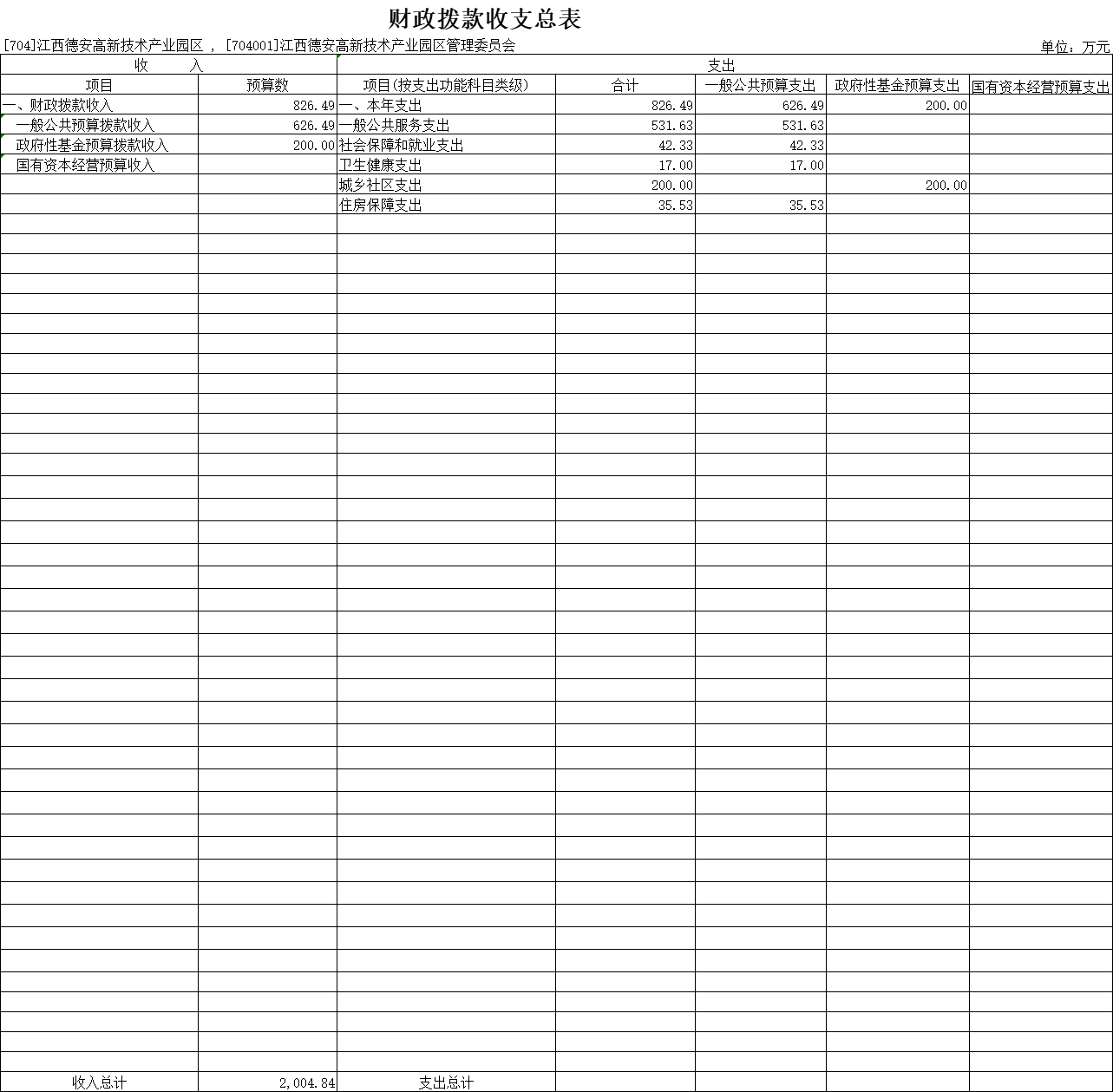 2024年德安高新技术产业园区管理委员会拨款支出预算总额826.49万元,较上年预算安排增加375.74万元。