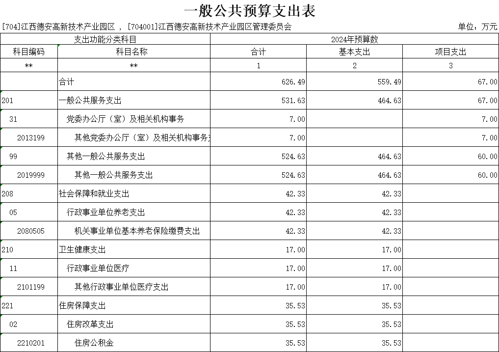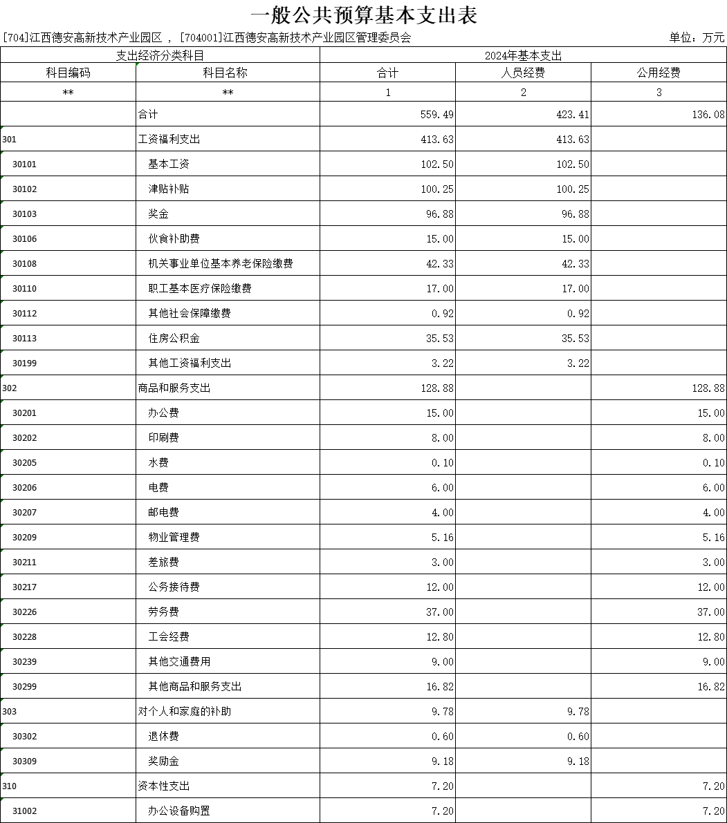 第二部分 德安高新技术产业园区管理委员会2024年部门预算表