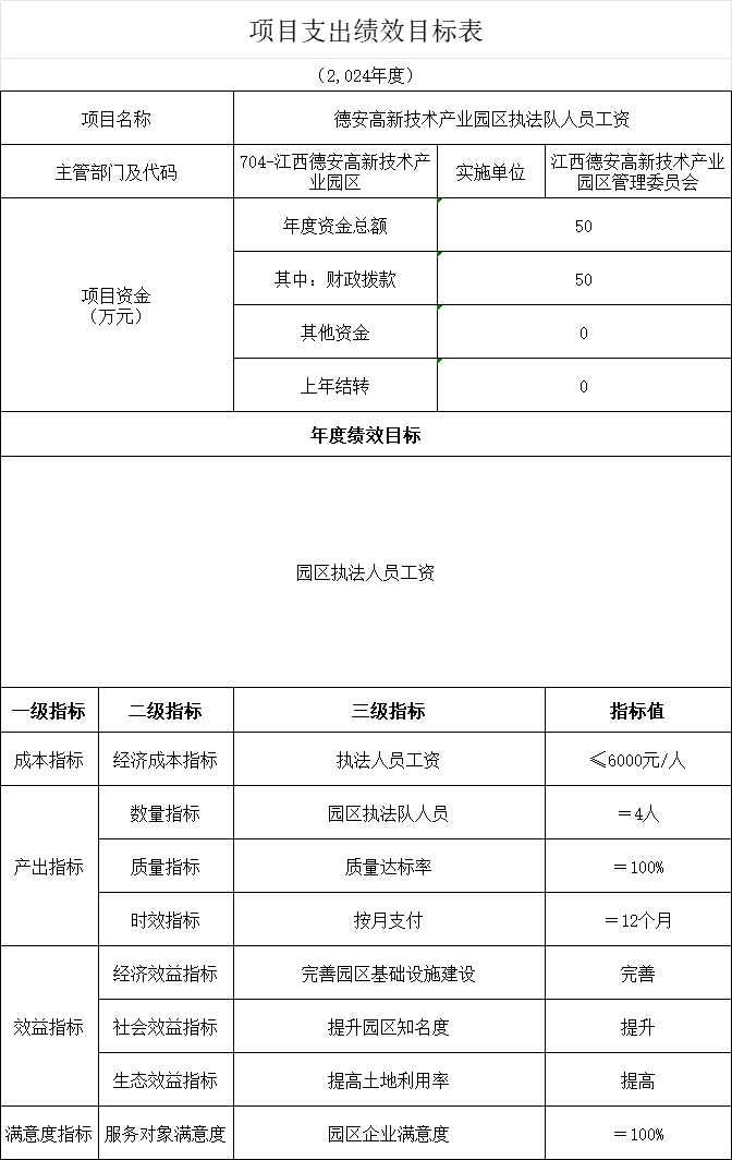 德安高新技术产业园区执法队人员工资项目预算绩效目标表.xls