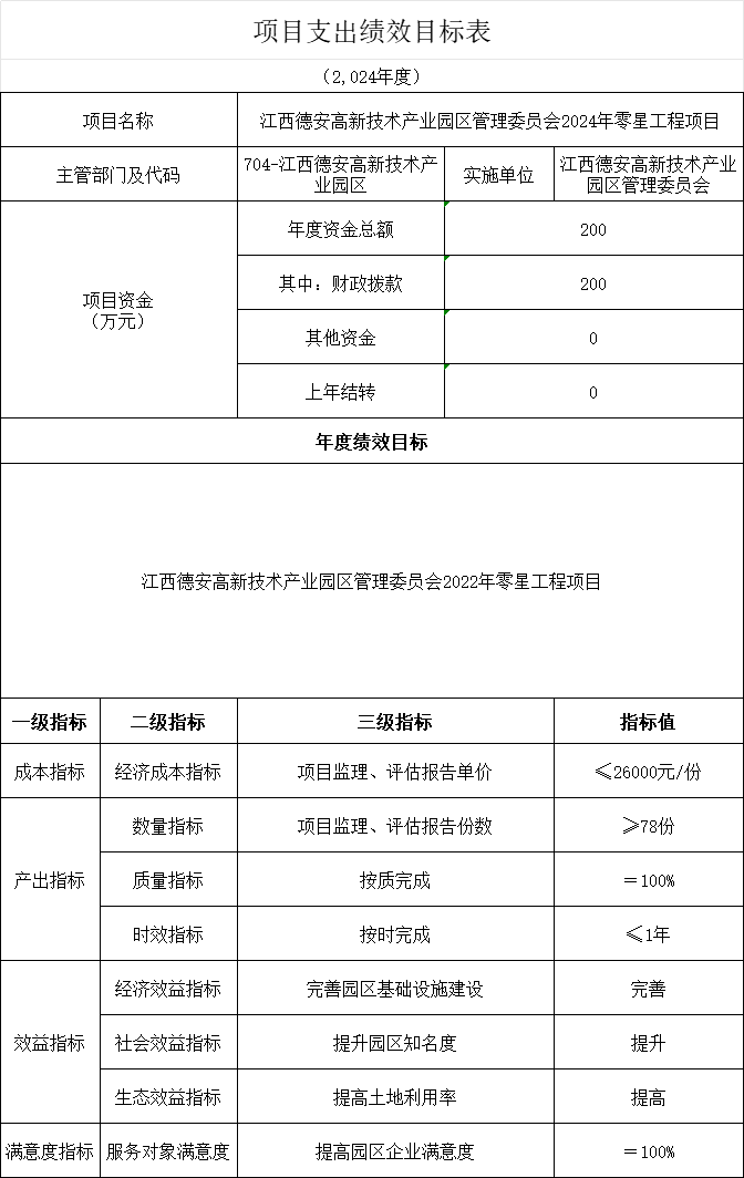 江西德安高新技术产业园区管理委员会2024年零星工程项目项目预算绩效目标表.xls