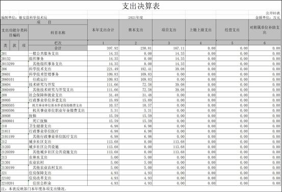 本部门2021年度支出总计397.92万元,其中本年支出合计 397.92万元,较2020年减少115.93万元,下降22.56%,主要原因是:企业项目支出减少;年末结转和结余0万元,较2020年减少 101.22万元,下降100%,主要原因是:2022年要实行零基础预算,所有资金财政全部收回。