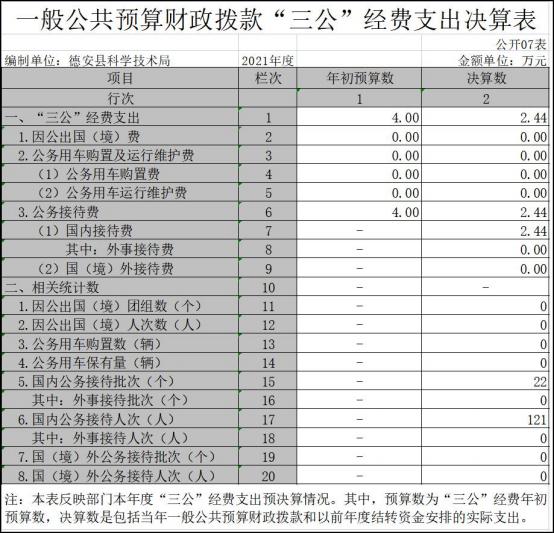 6、“三公 ”经费支出:指用一般公共预算财政拨款安排的因公出国(境)费、公务用车购置及运行维护费和公务接待费。其中,因公出国(境)费反映单位公务出国(境)的国际旅费、国外城市间交通费、住宿费、伙食费、培训费、公杂费等支出;公务用车购置及运行维护费反映单位公务用车车辆购置支出(含车辆购置税、牌照费),按规定保留的公务用车燃料费、维修费、过桥过路费、保险费、安全奖励费用等支出;公务接待费反映单位按规定开支的各类公务接待(含外宾接待)支出。