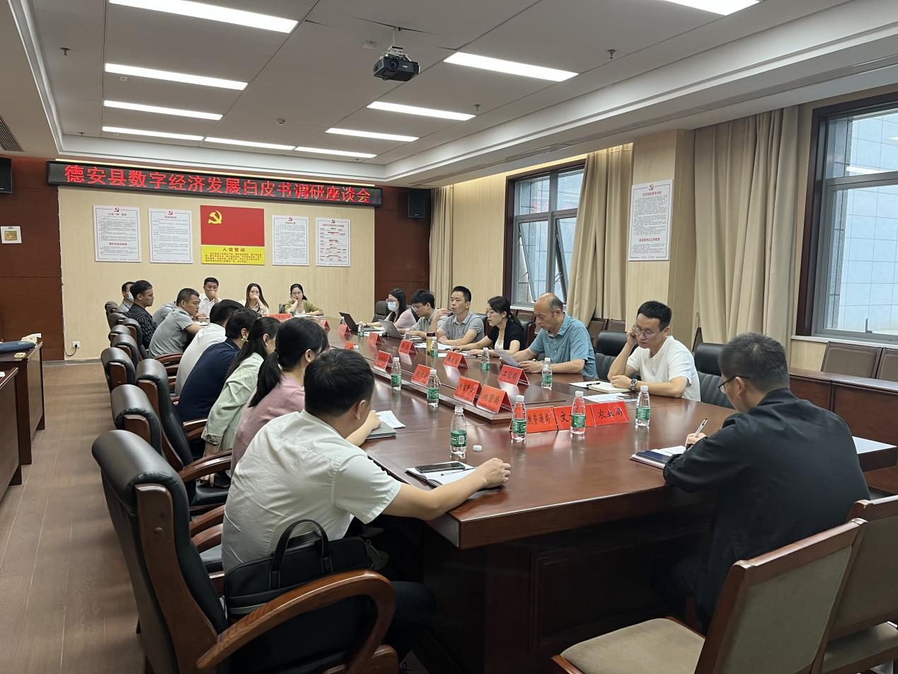 调研分为座谈交流和现场考察两个环节。上午开展了数字经济白皮书座谈会,副县长周洁出席了会议,县工信局局长魏文宝主持会议。