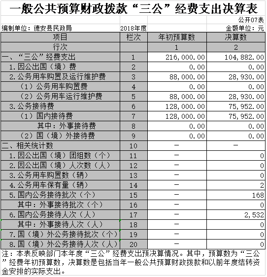 纳入本套部门决算汇编范围的单位共7个,包括:德安县民政局、德安县社会救助局、德安县社会福利中心、德安县老龄工作委员会办公室、德安县殡葬管理所、德安县流浪乞讨人员救助管理站、德安县城区居家养老服务中心,其中社会福利中心和城区居家养老服务中心经费使用未列入本套部门决算汇编。