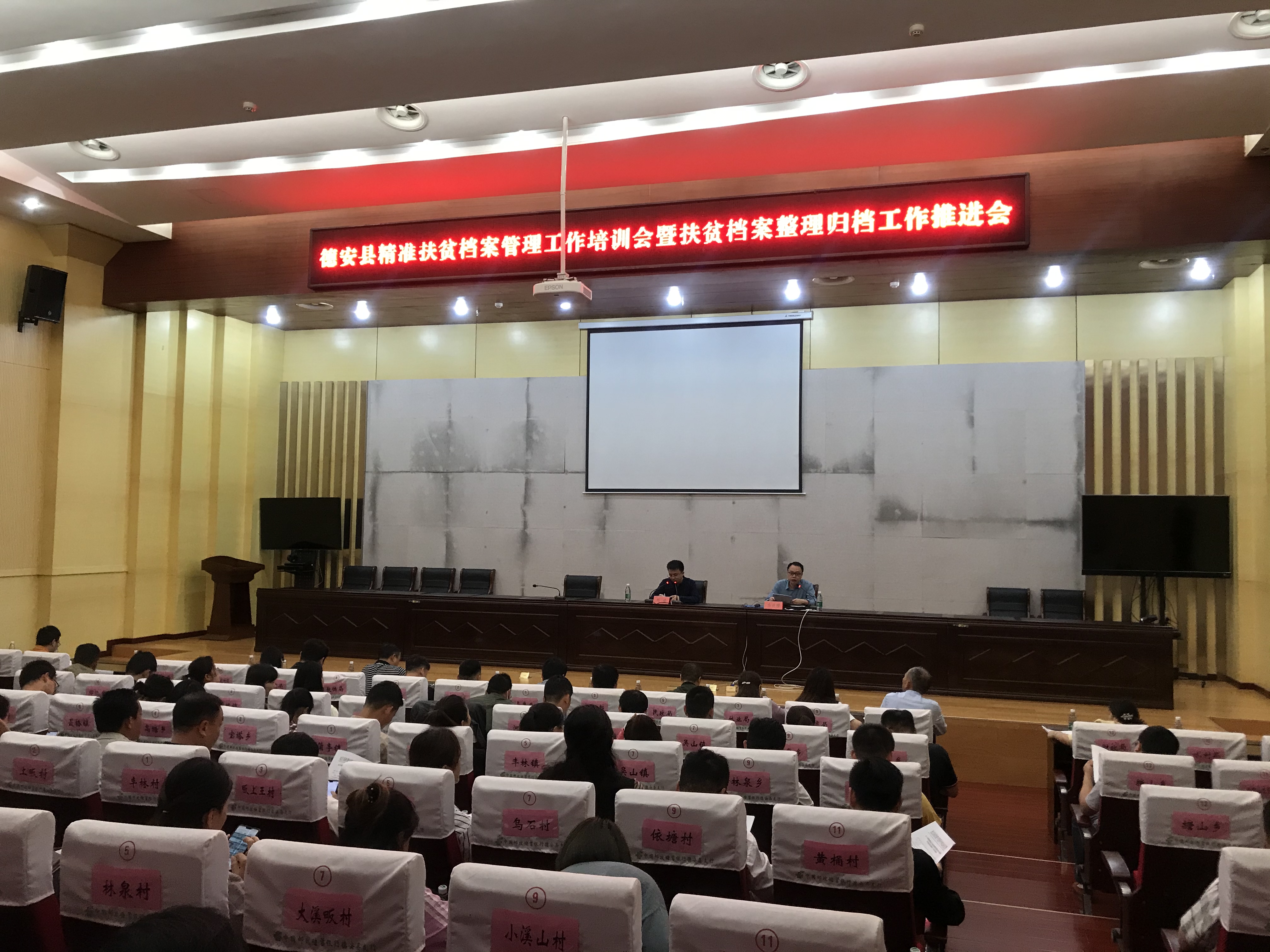 5月7日,召开德安县精准扶贫档案管理工作培训会暨扶贫档案整理归档工作推进会,县扶贫办党组书记、主任刘佳出席会议并讲话,县扶贫办党组成员、副主任余世樑主持会议,县直相关单位分管负责同志,15个乡(镇、场)分管扶贫工作领导、扶贫专干,各村具体负责扶贫档案整理工作的驻村第一书记以及村扶贫专干共计140余人参加会议。会上县扶贫办、县档案馆业务人员详细讲解了精准扶贫档案的收集、整理及归档要求。下午在林泉乡林泉村进行现场观摩,15个乡(镇、场)扶贫分管领导、扶贫专干参加。