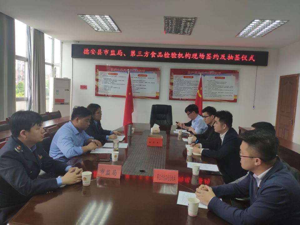 为加强食品安全抽检工作,掌握全县食品安全总体状况,及时发现和处置食品安全问题,防范系统性、区域性风险及结合当前德安县创建市级食品安全示范县的有关要求,县市监局通过对第三方检测机构资质审核并在中国政府采购网上查实检测机构未被列入失信名单,以询价的方式确定了5家食品检测机构来承担我县食品抽检任务。并与4月18日在市监局三楼会议室进行委托检验合同的签订。