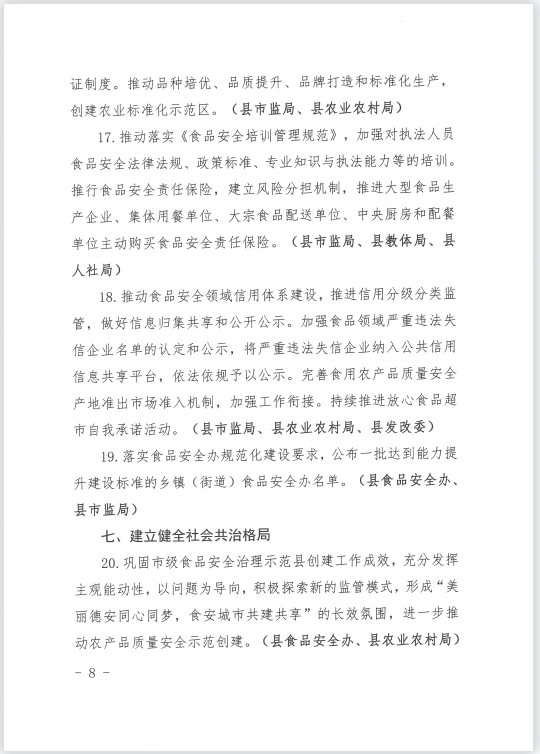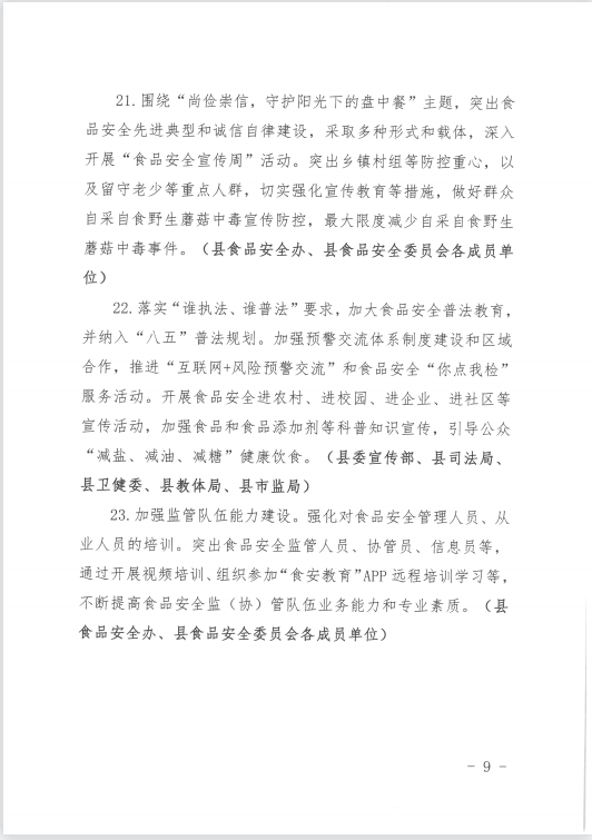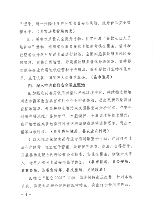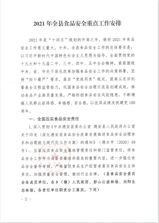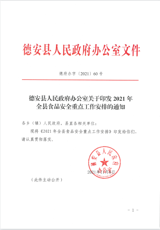 德安县政府办关于印发2021年全县食品安全重点工作安排的通知