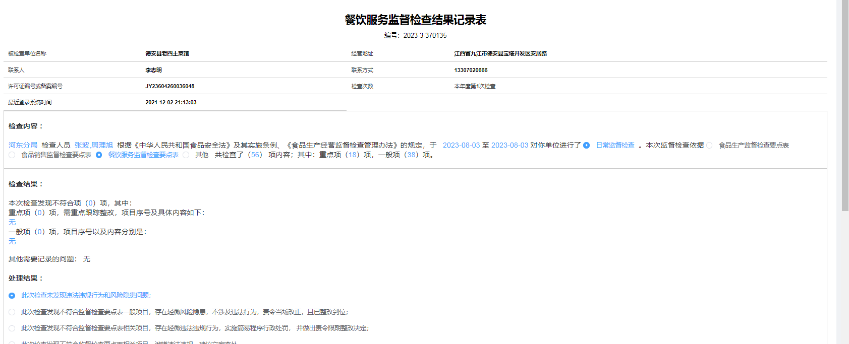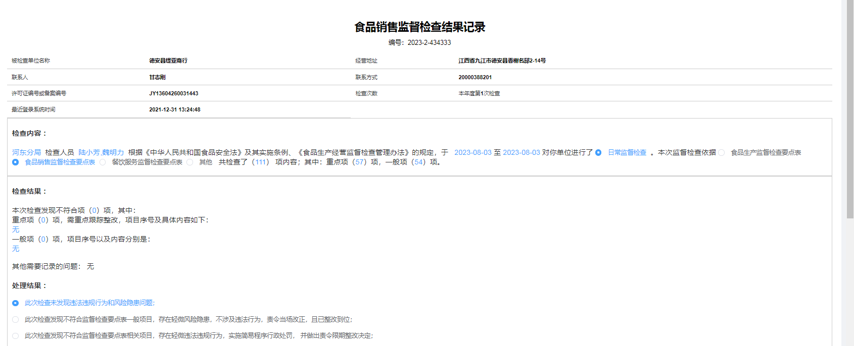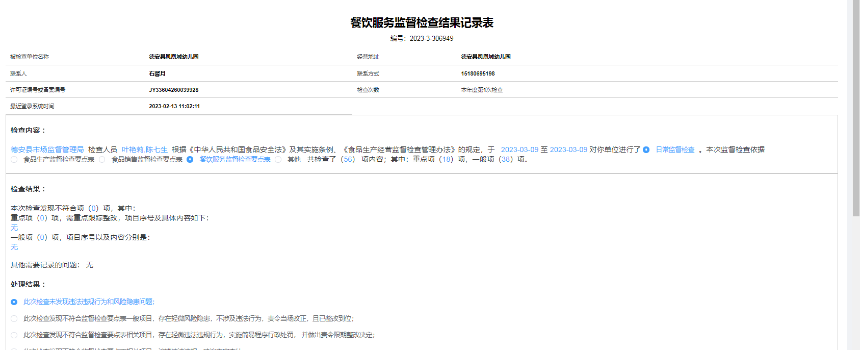 2023年食品安全日常检查
