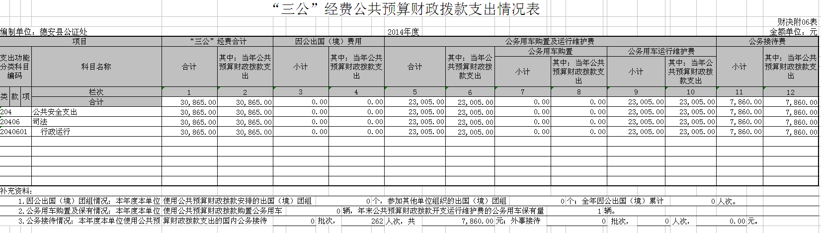 德安县公证处“三公”经费公共预算财政拨款支出情况表