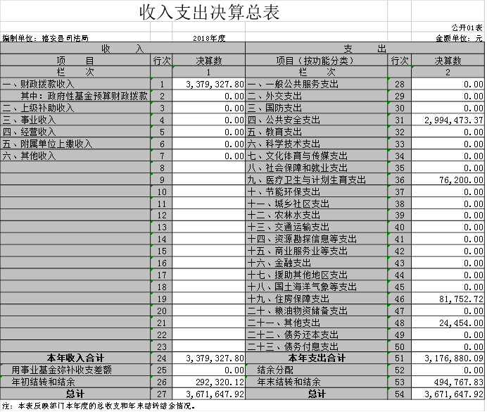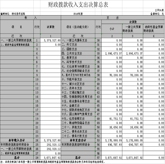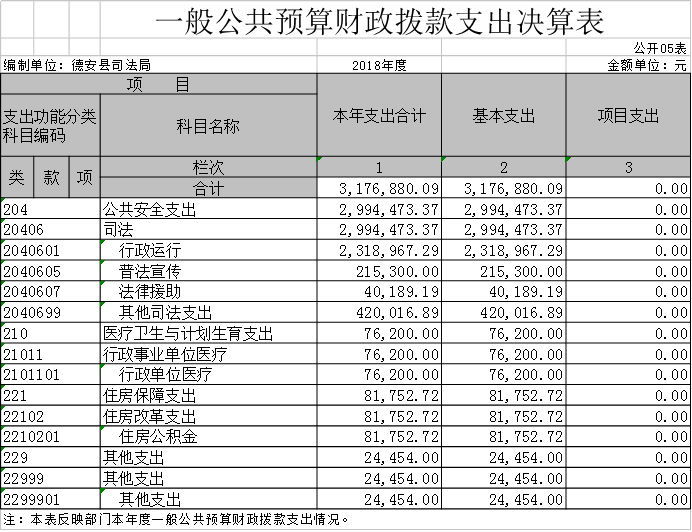 | 编制单位:德安县司法局 | 2018年度 |  | 金额单位:元 |