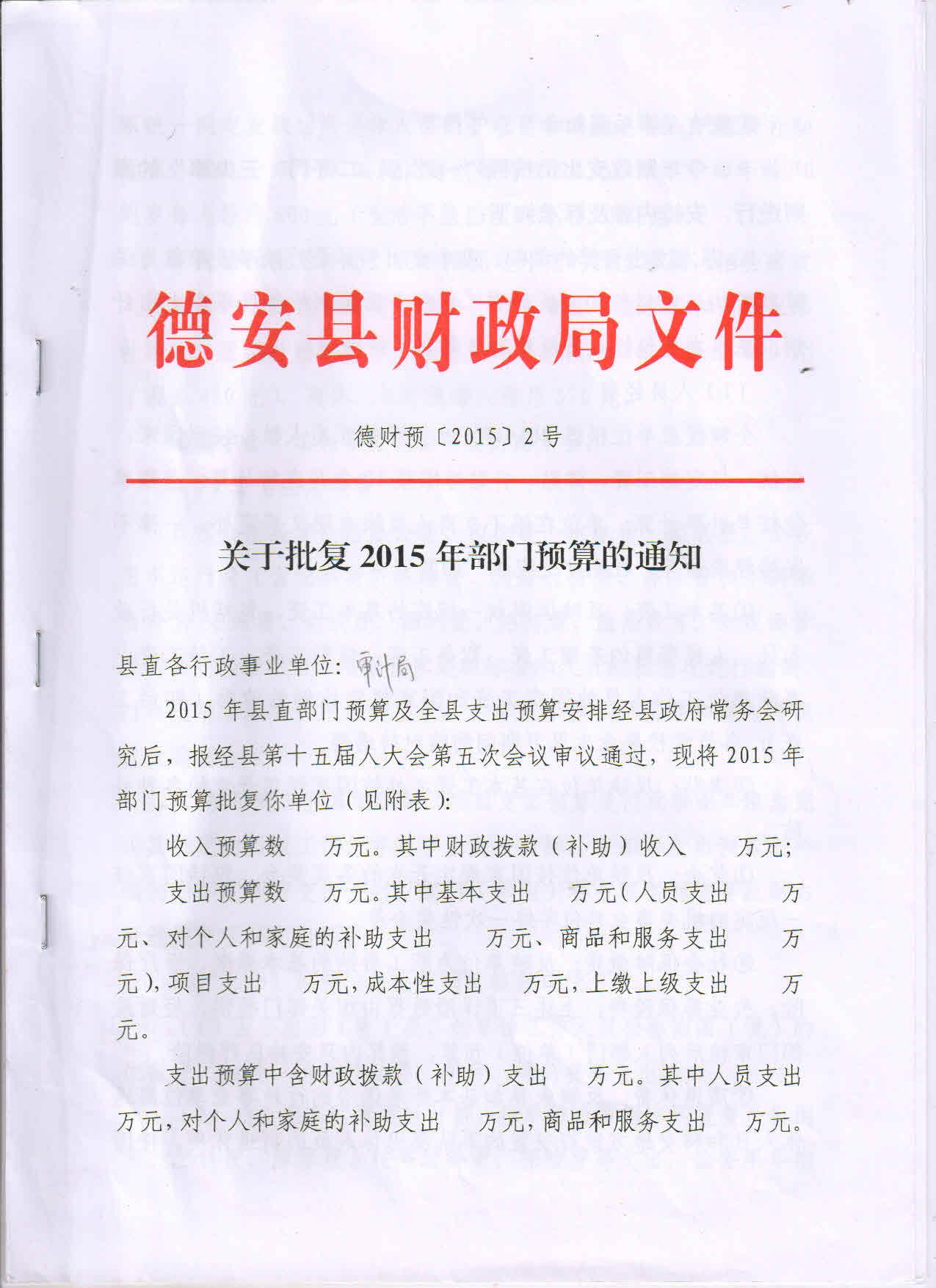 审计局2015年部门预算