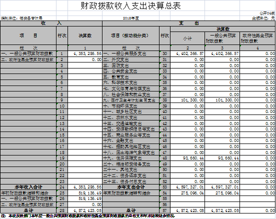 四、财政拨款收入支出决算总表