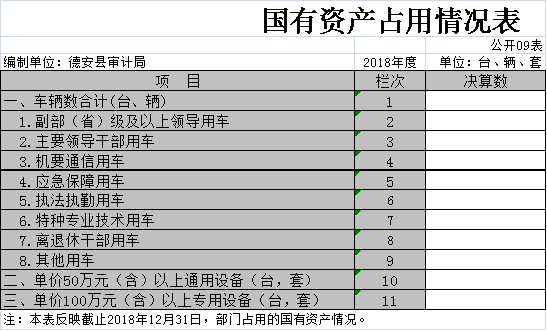 九、国有资产占用情况表