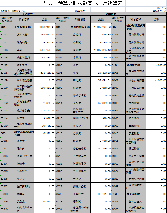 第二部分 2018年度部门决算表