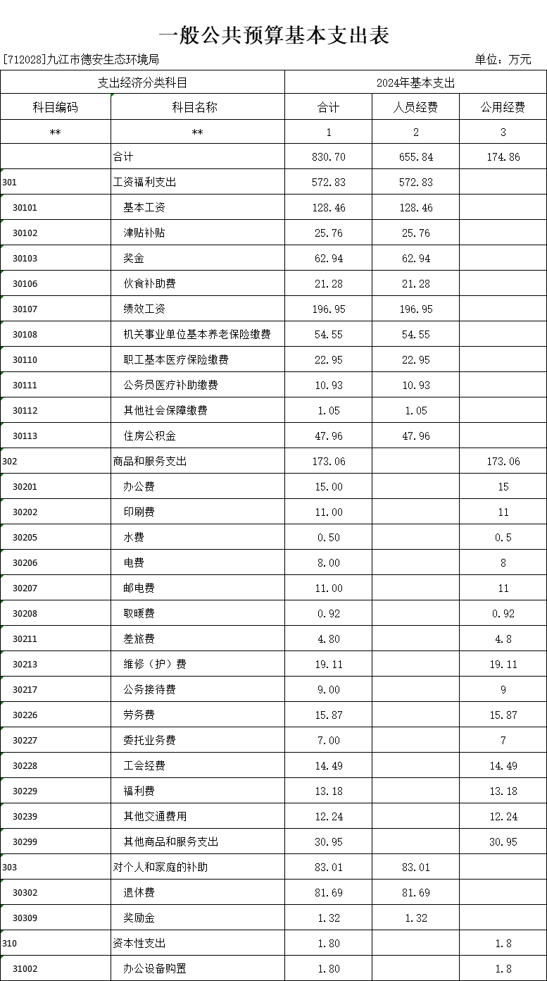 第三部分 九江市德安生态环境局2024年单位预算情况说明