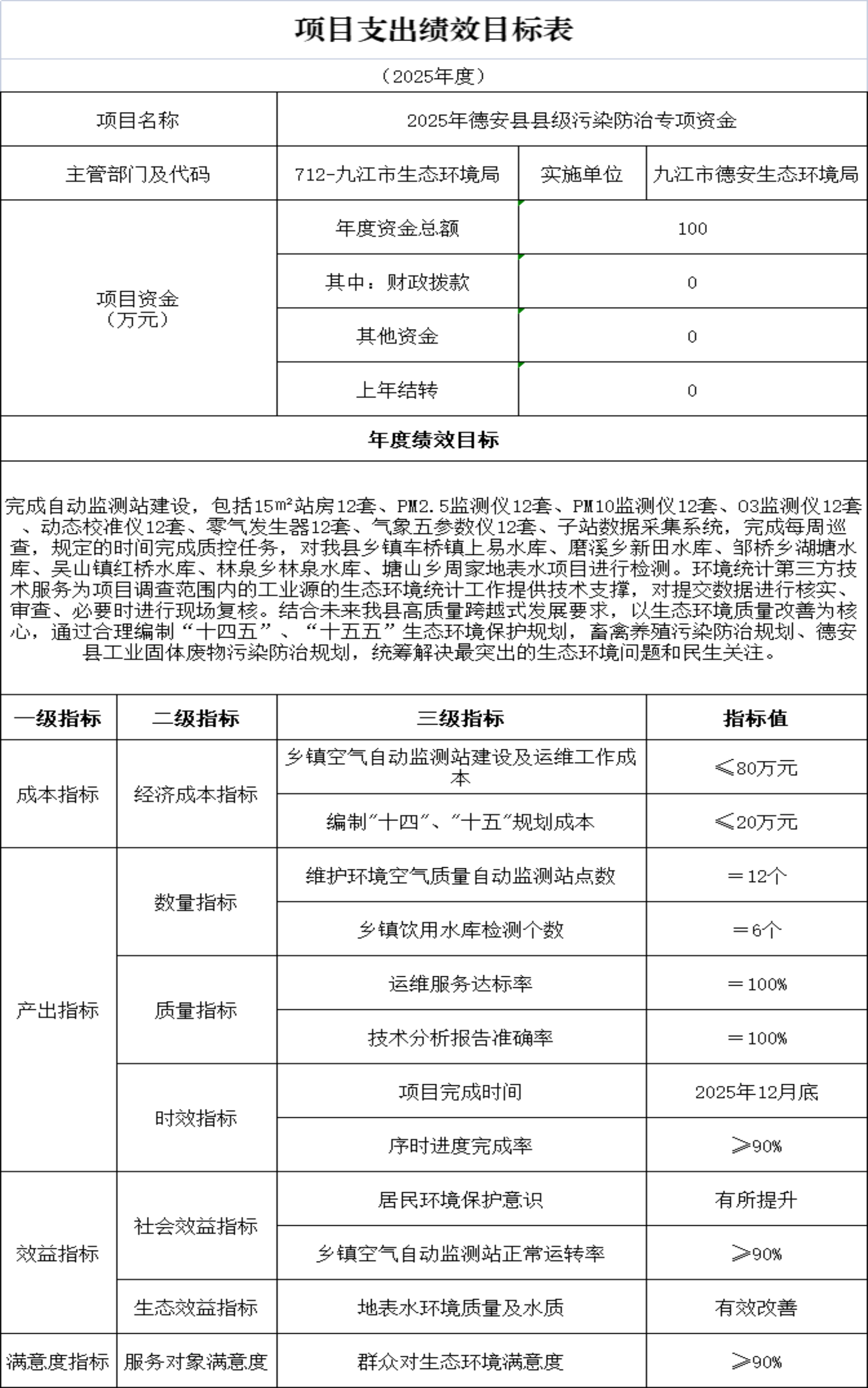 (九)2025年德安县县级污染防治专项资金项目情况说明。