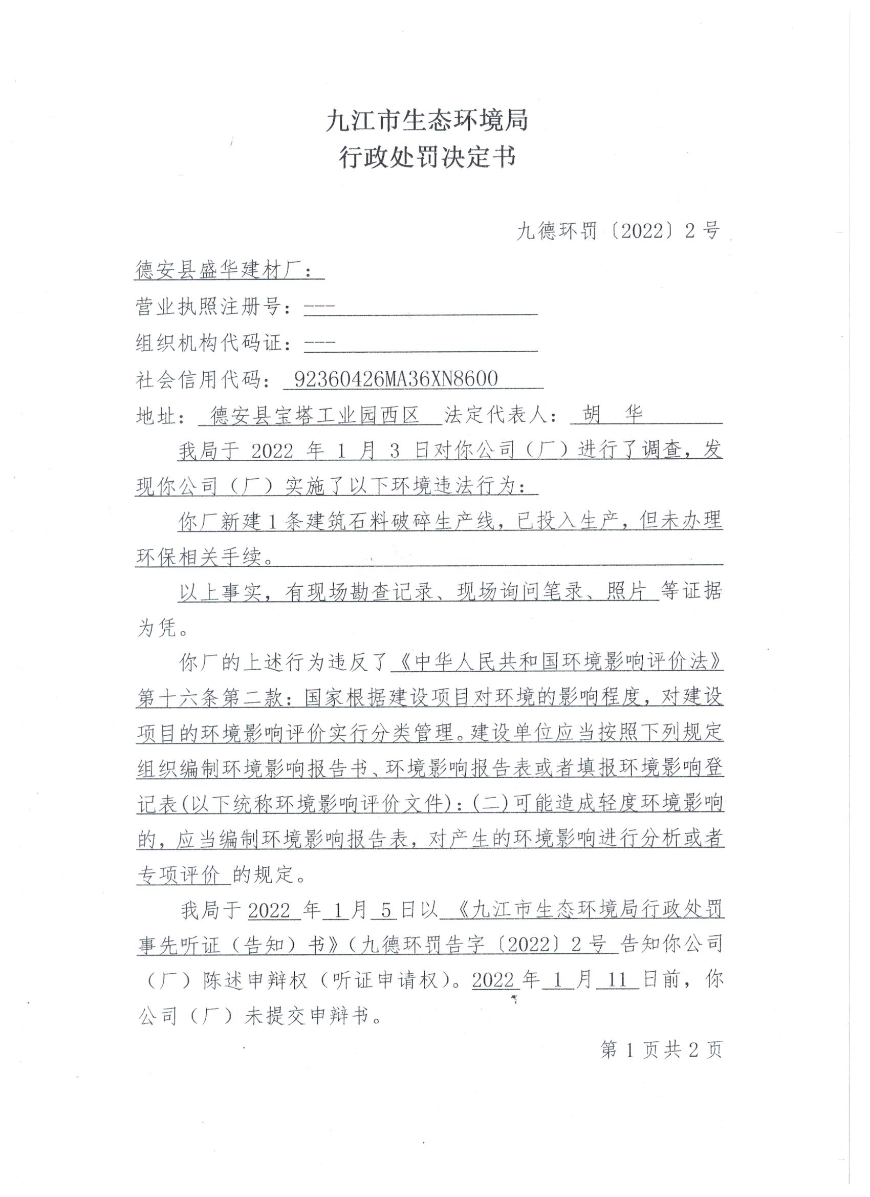 行政处罚决定书