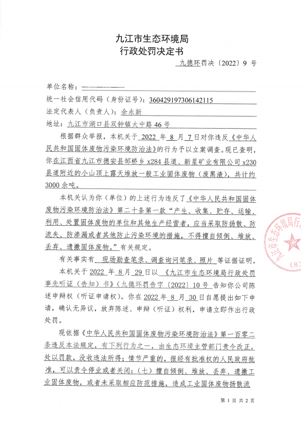 行政处罚决定书