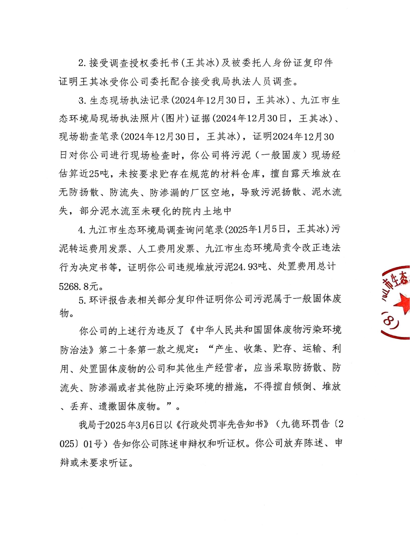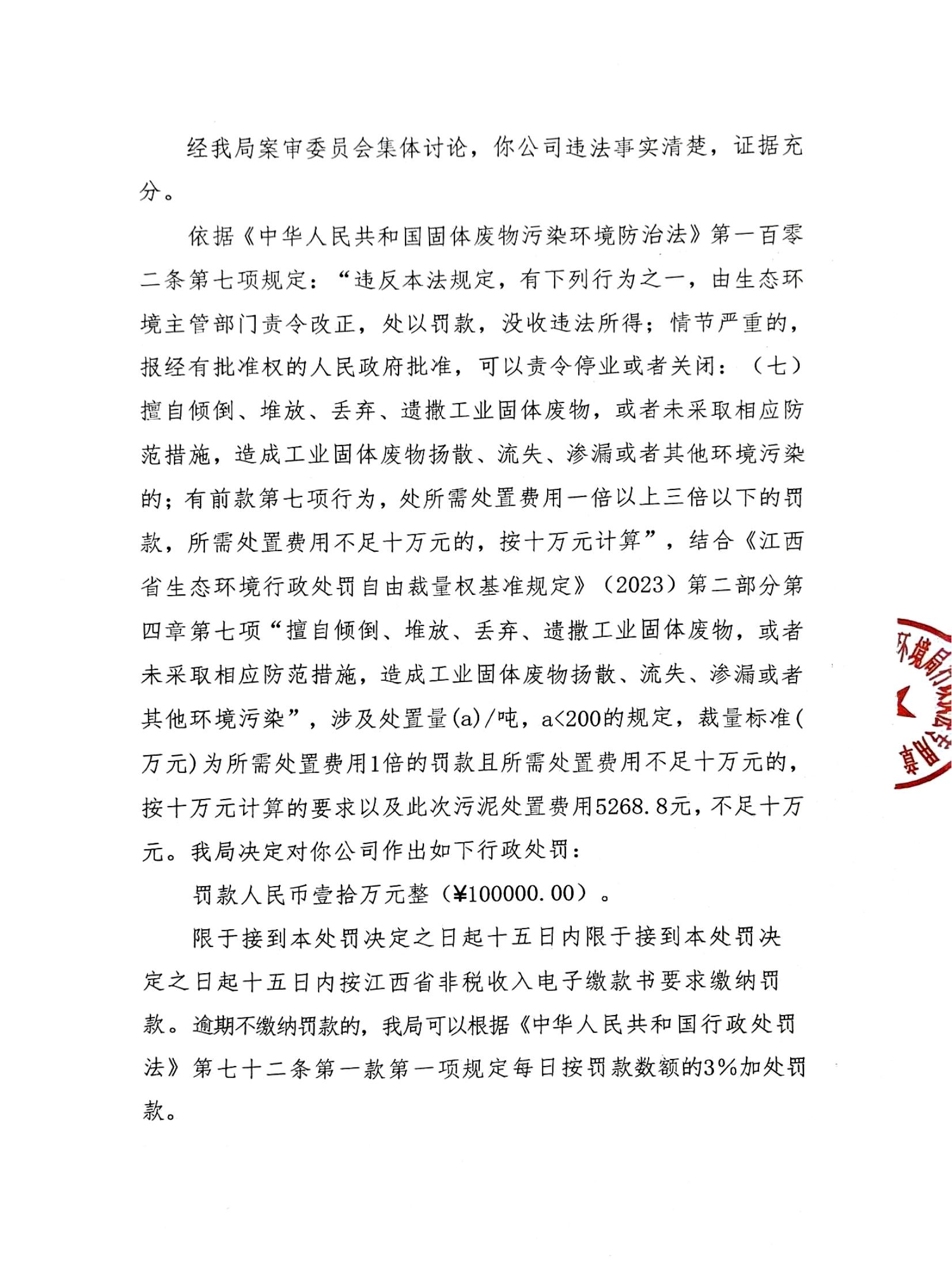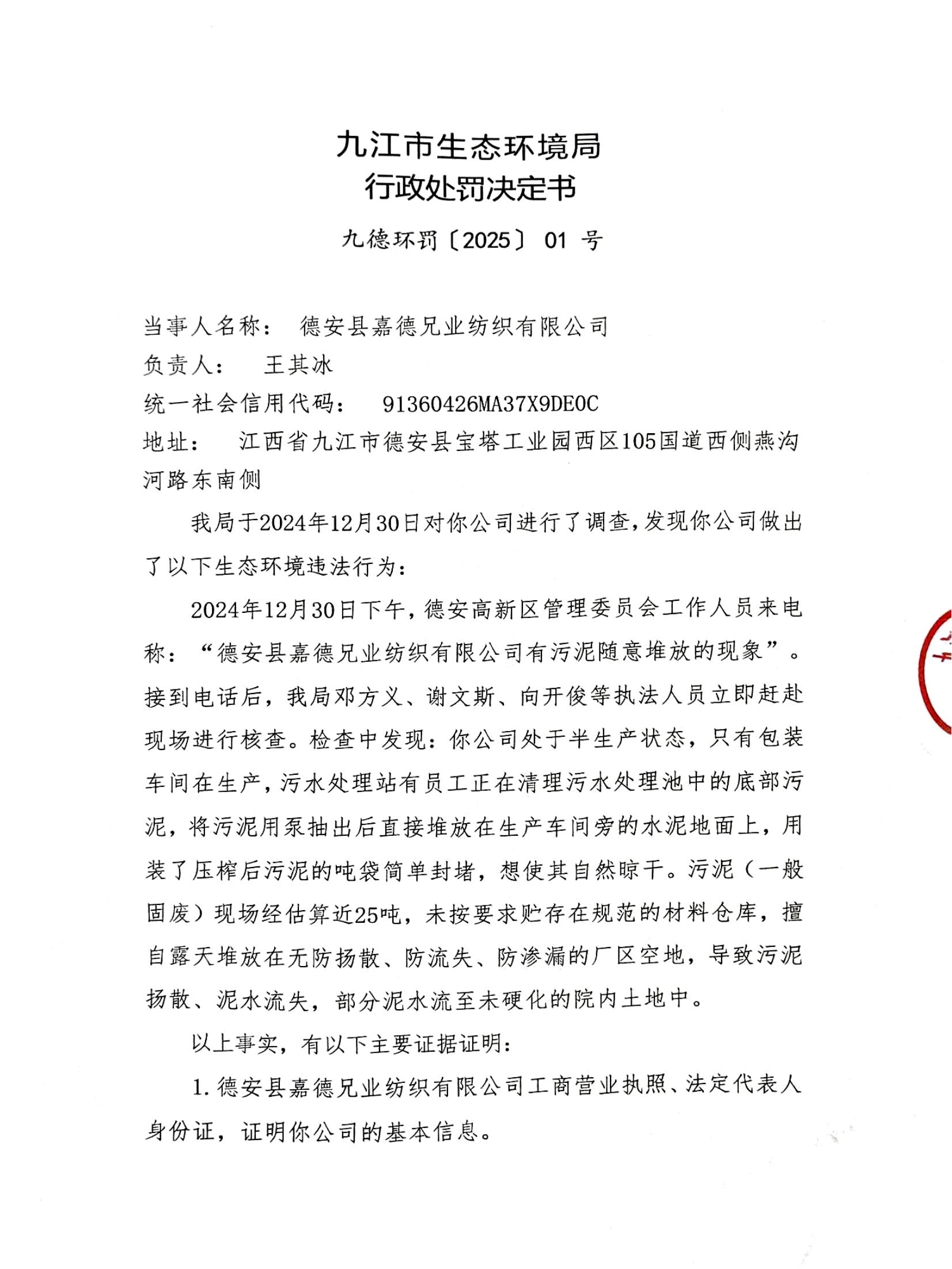 关于德安县嘉德兄业纺织有限公司的行政处罚决定书