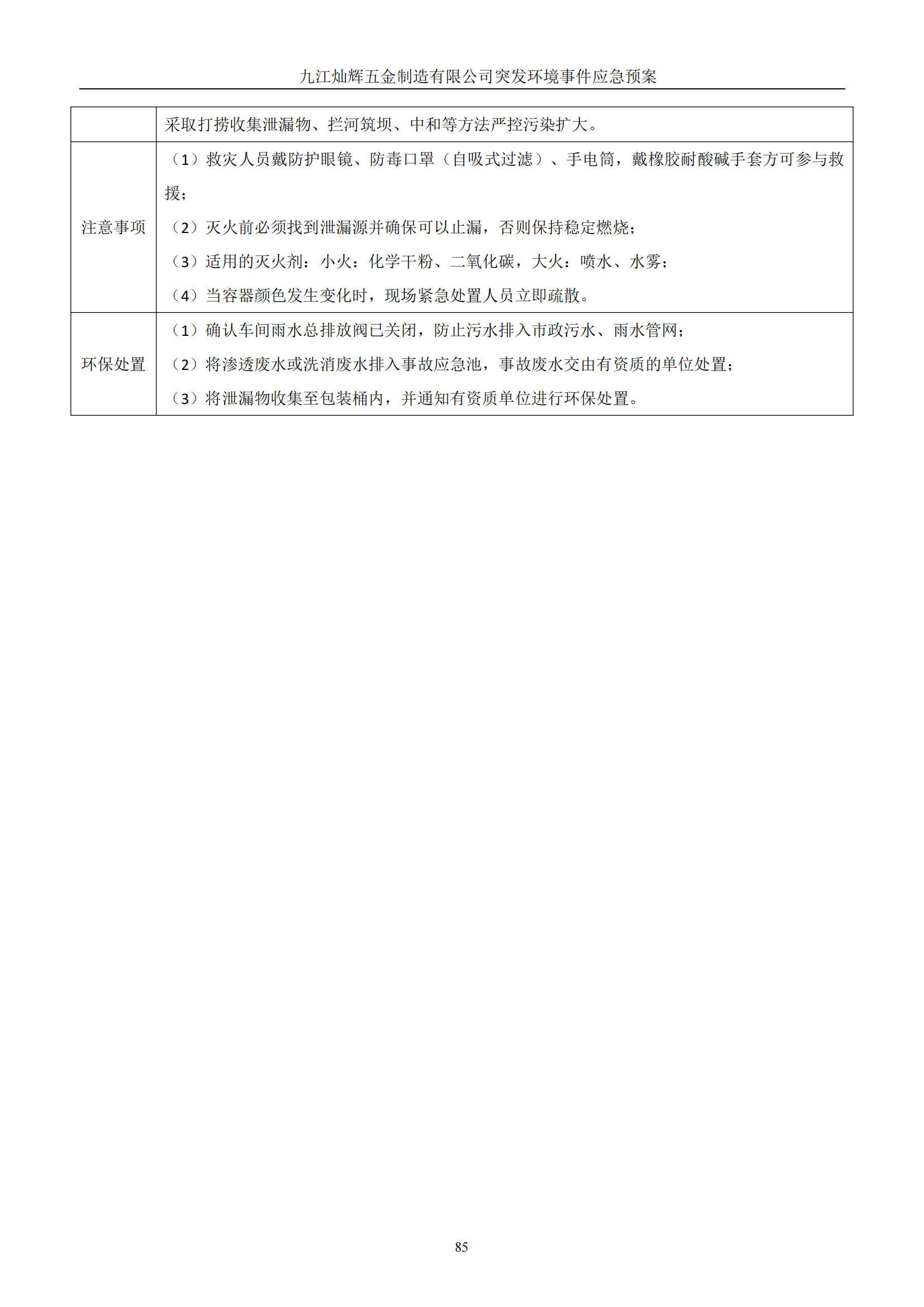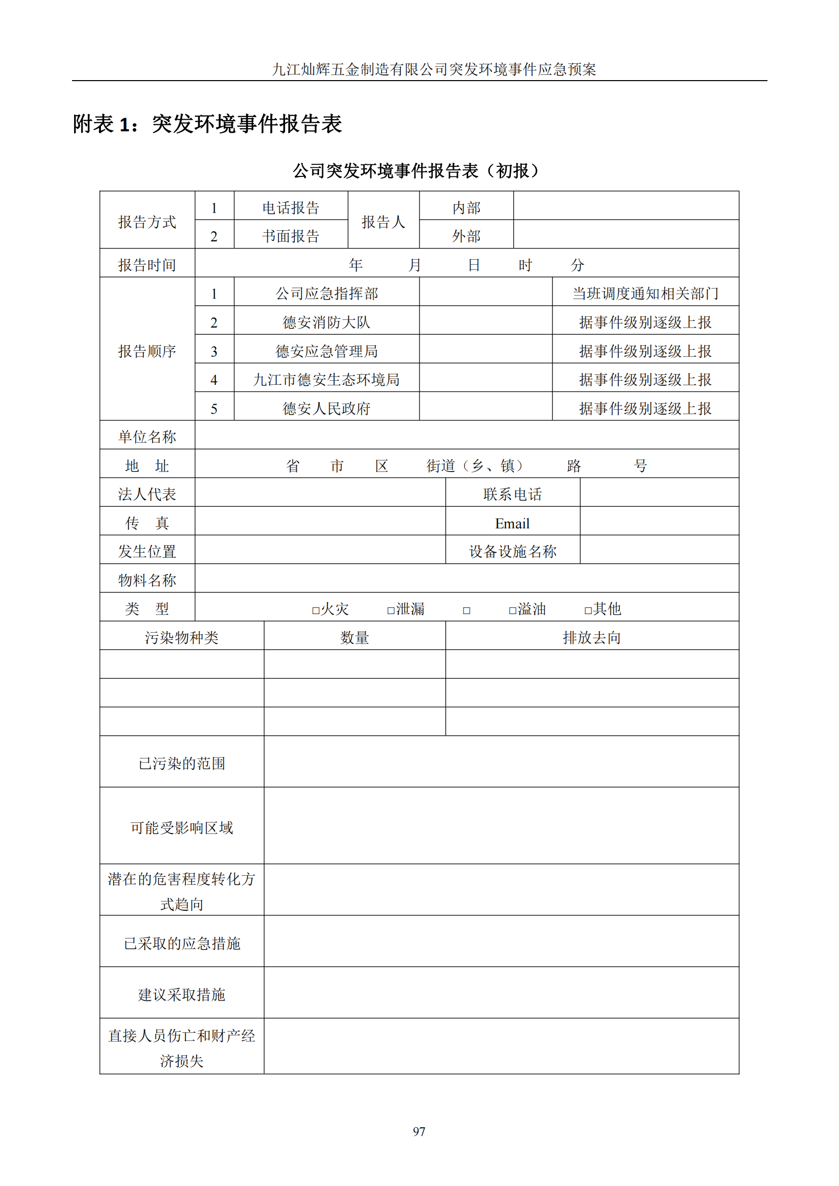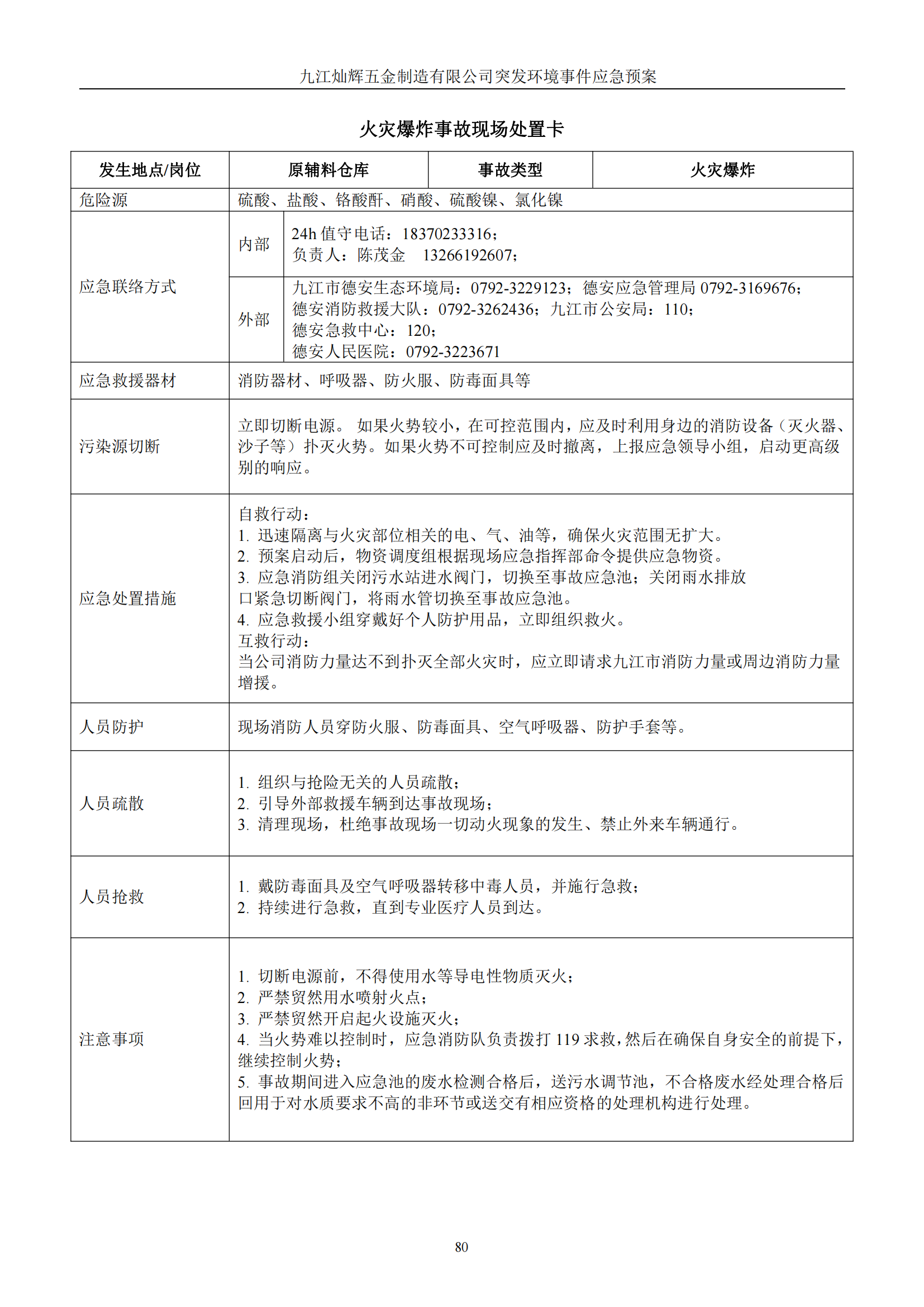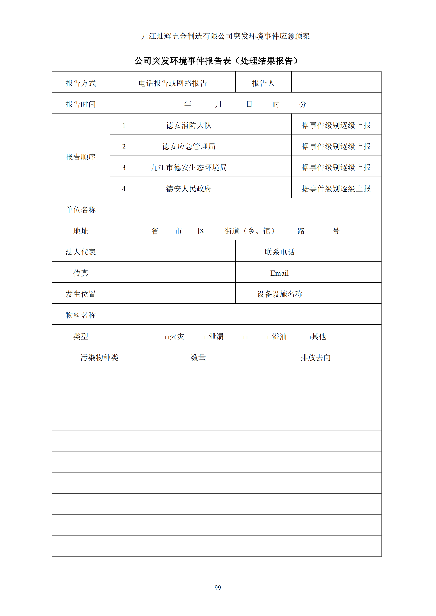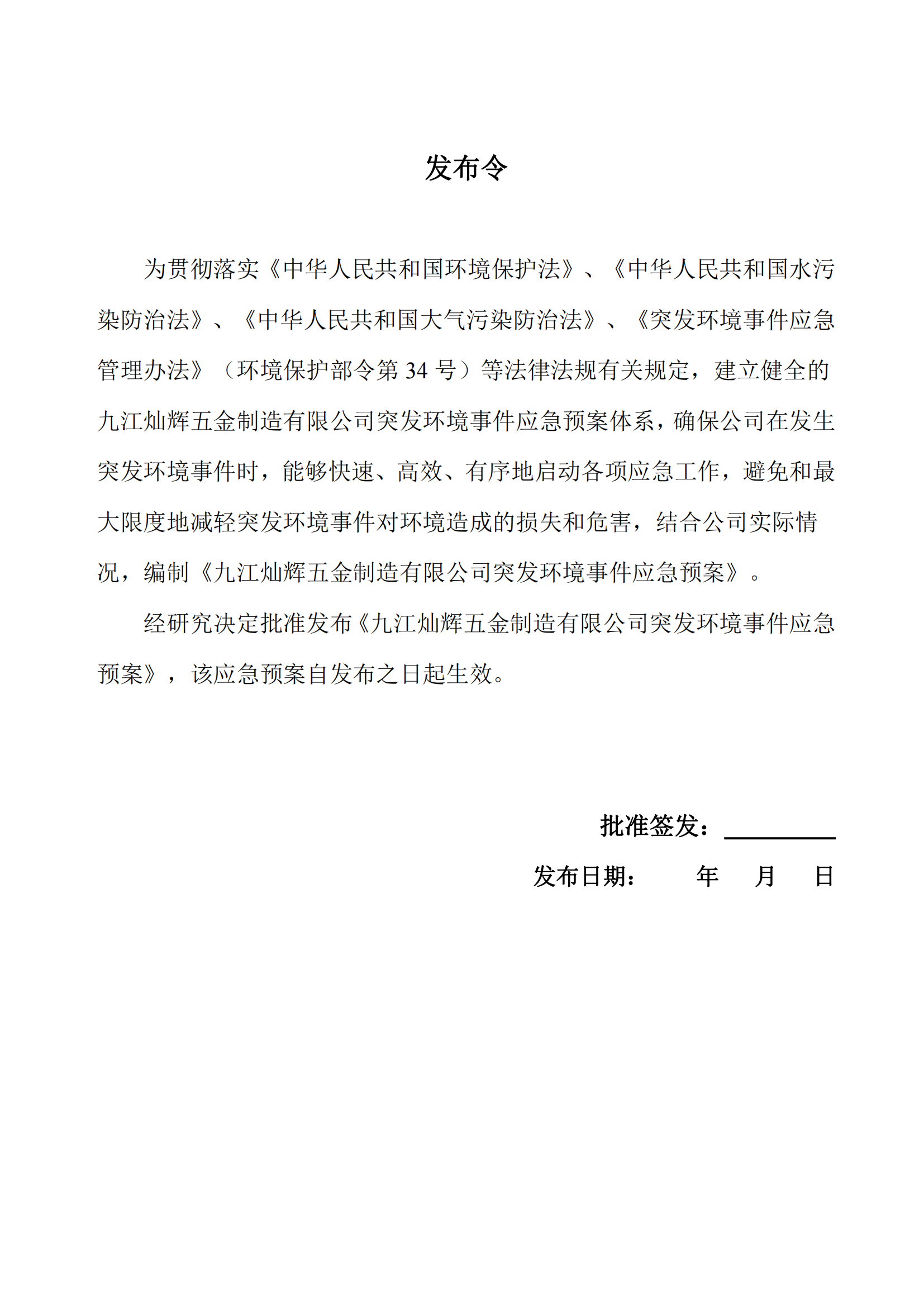九江灿辉五金制造有限公司应急预案