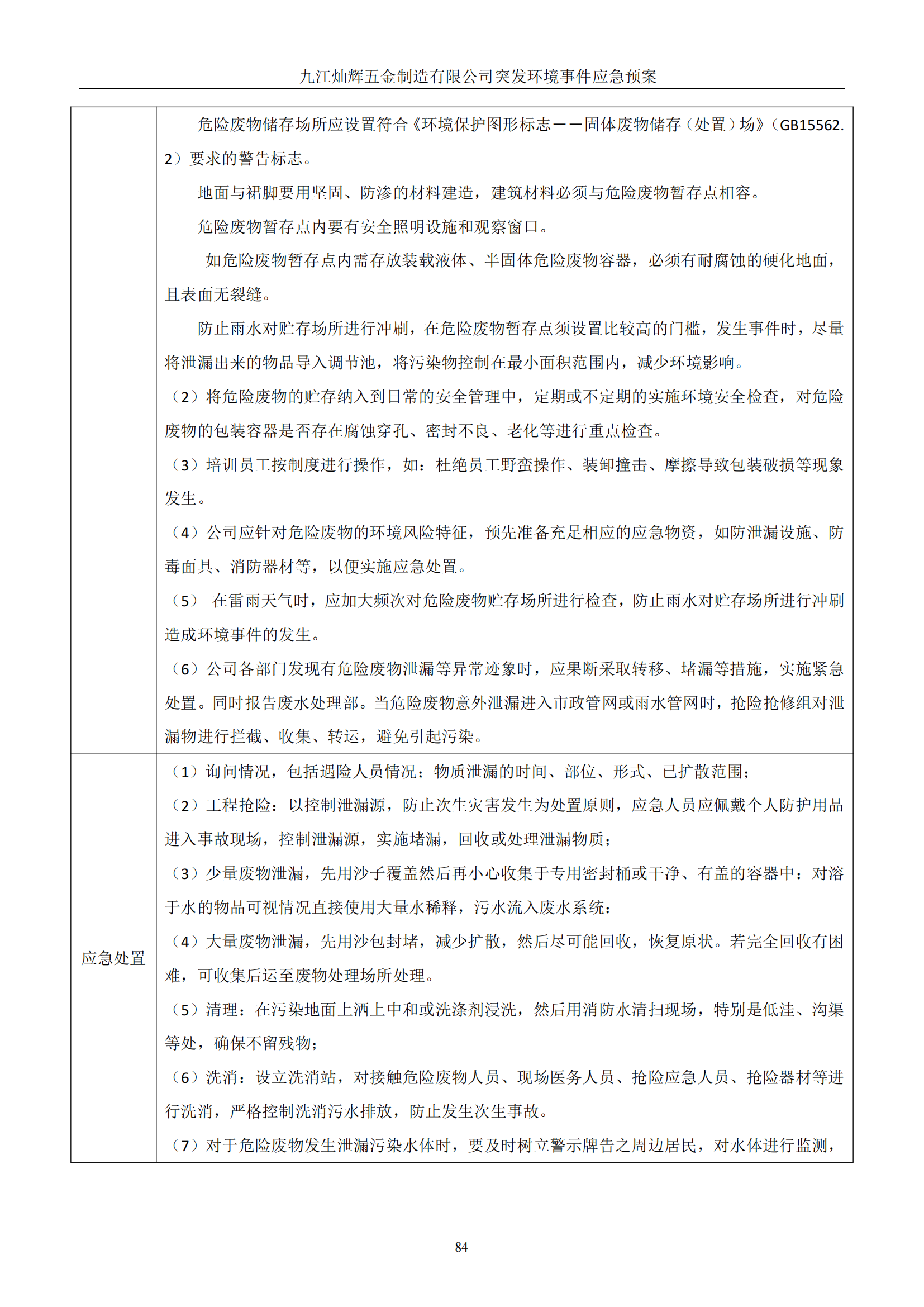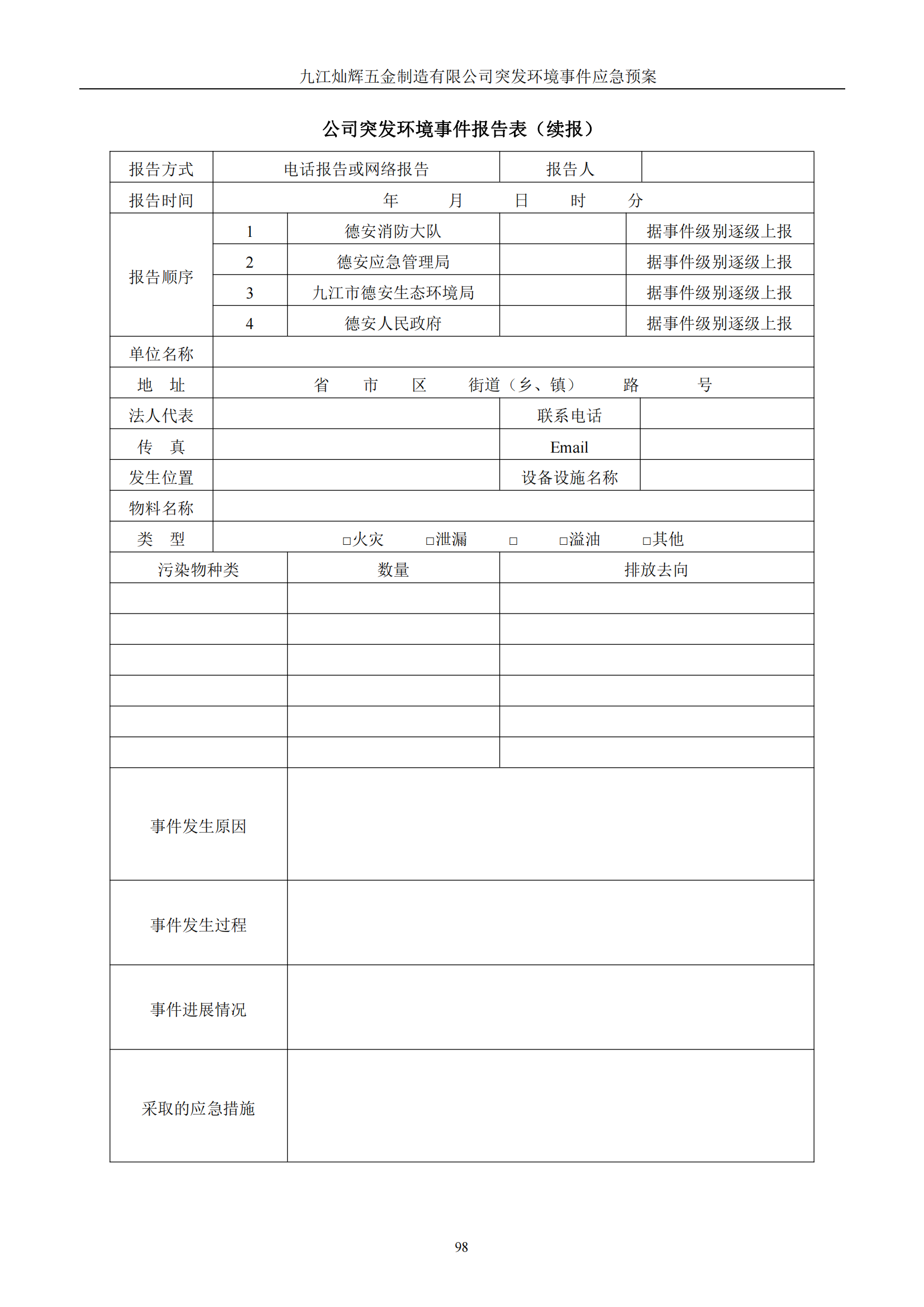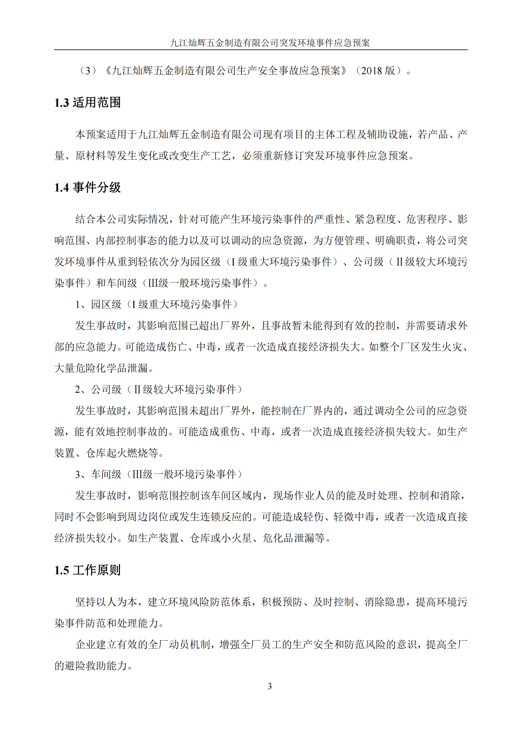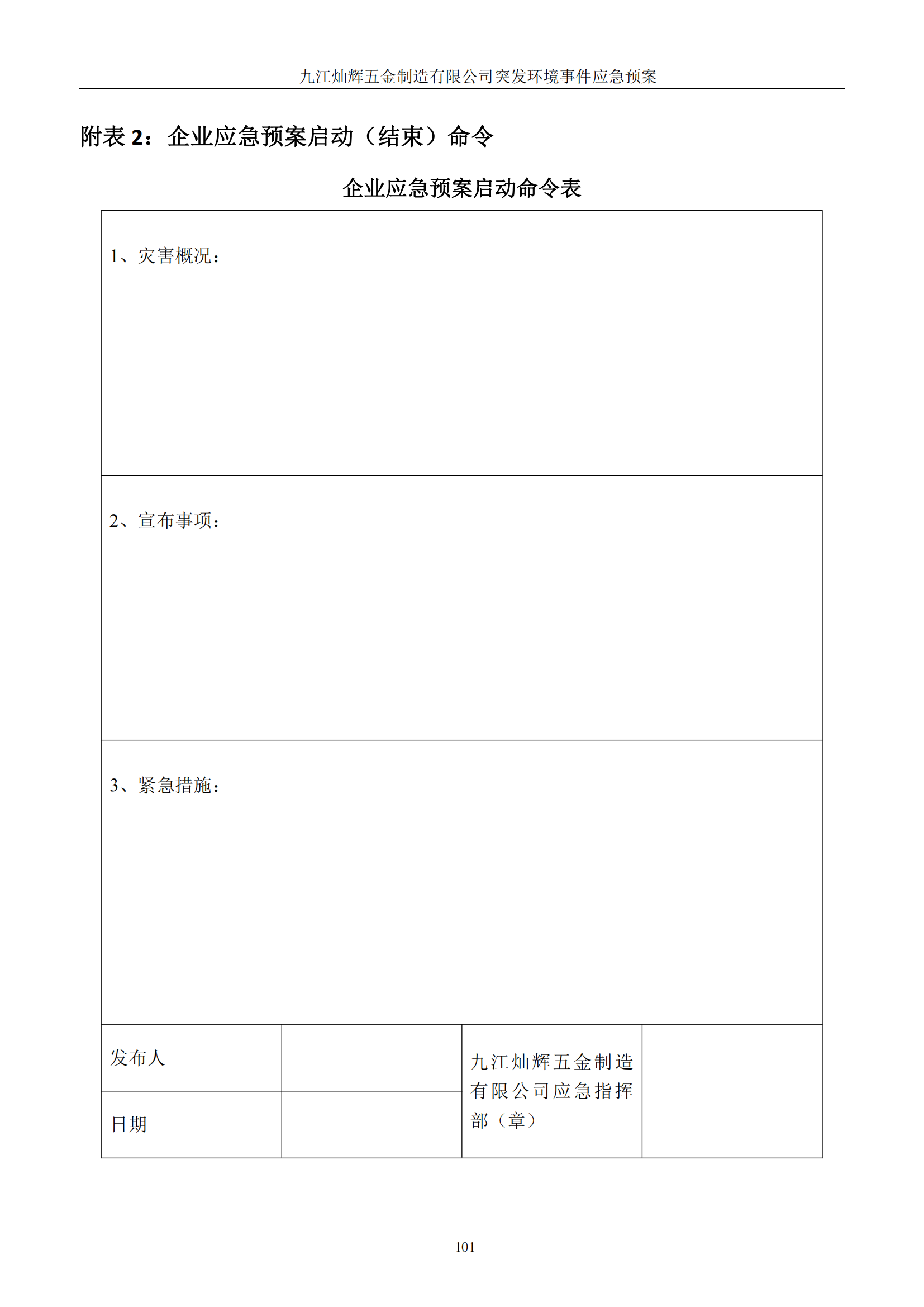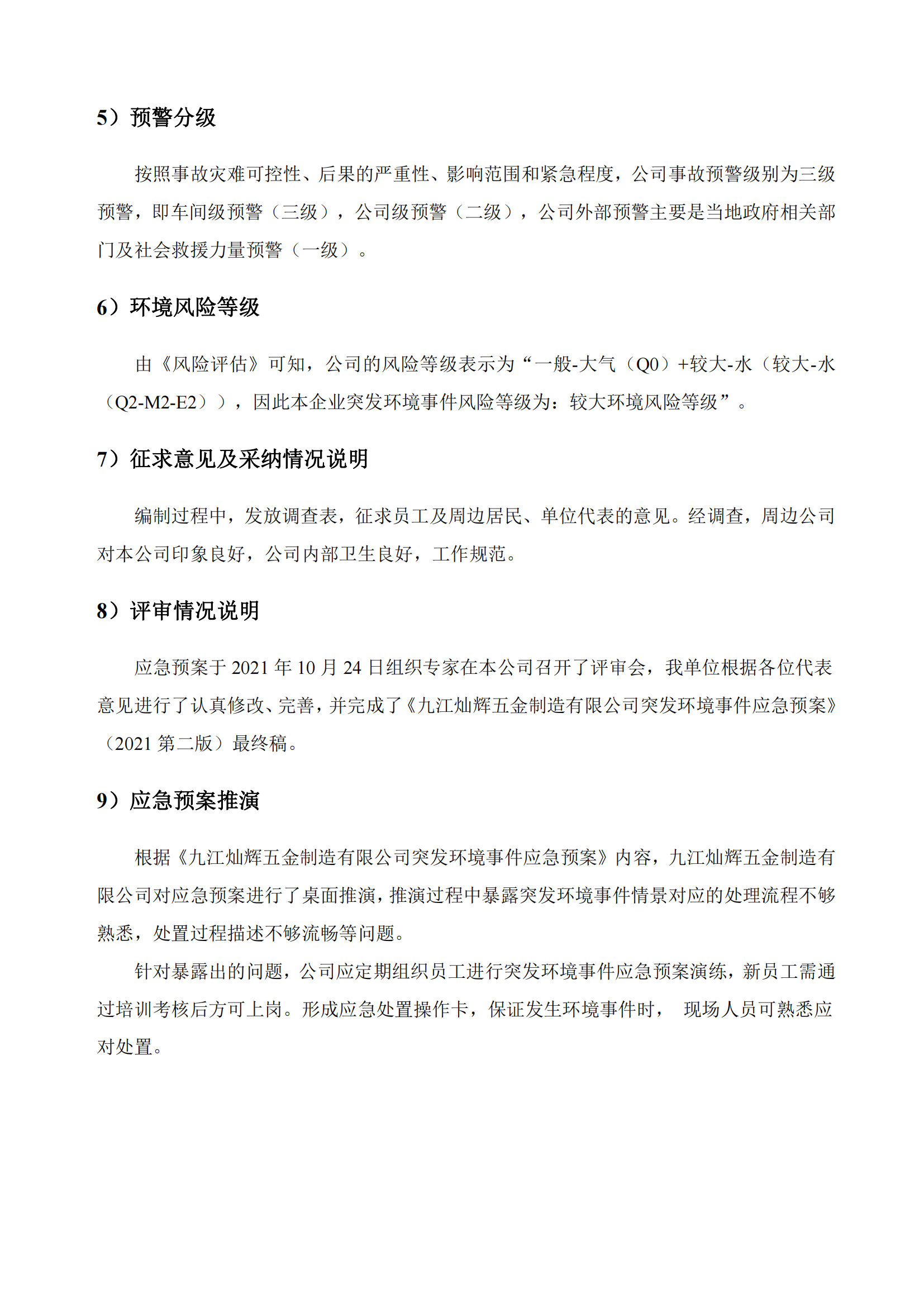 九江灿辉五金制造有限公司应急预案