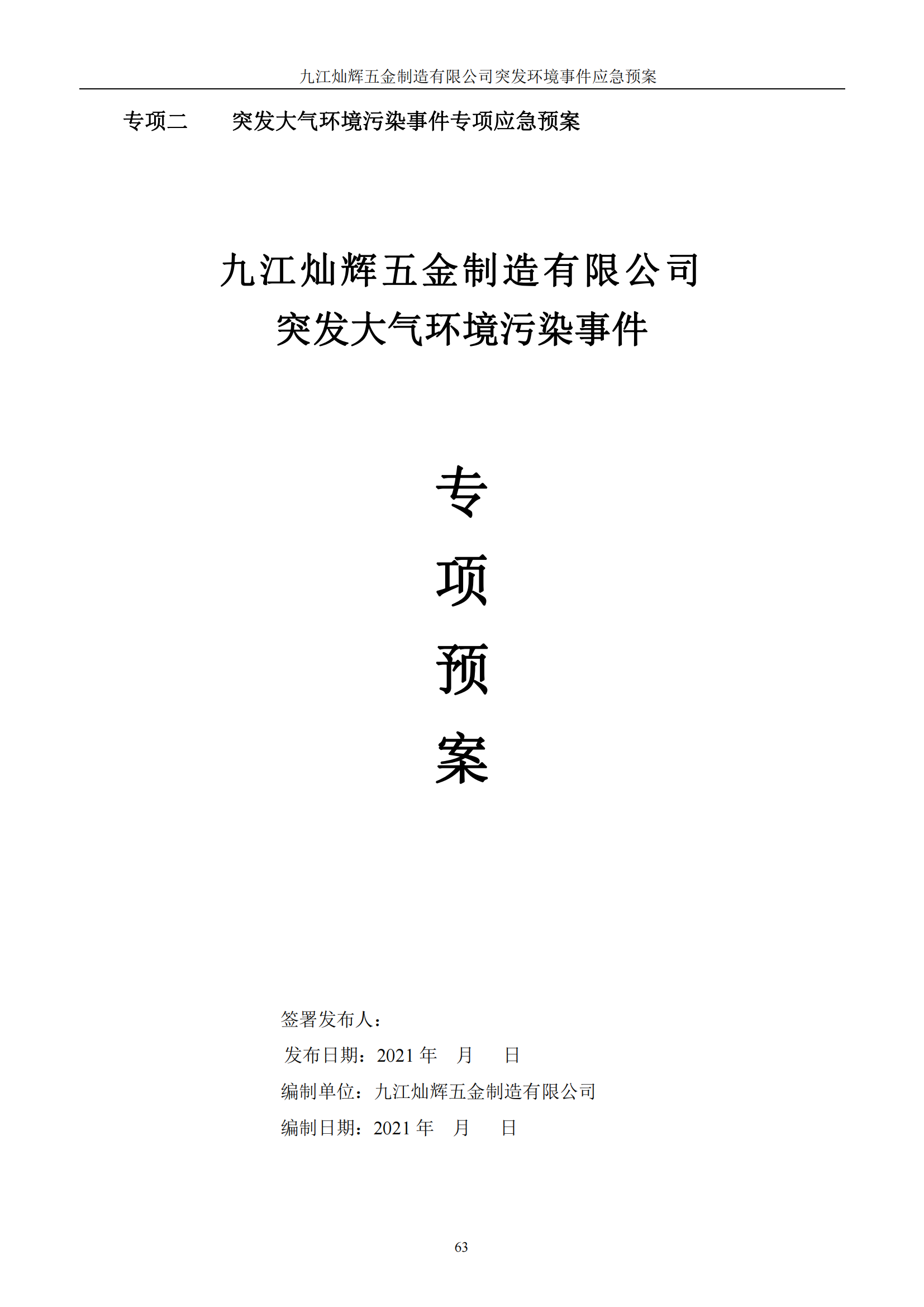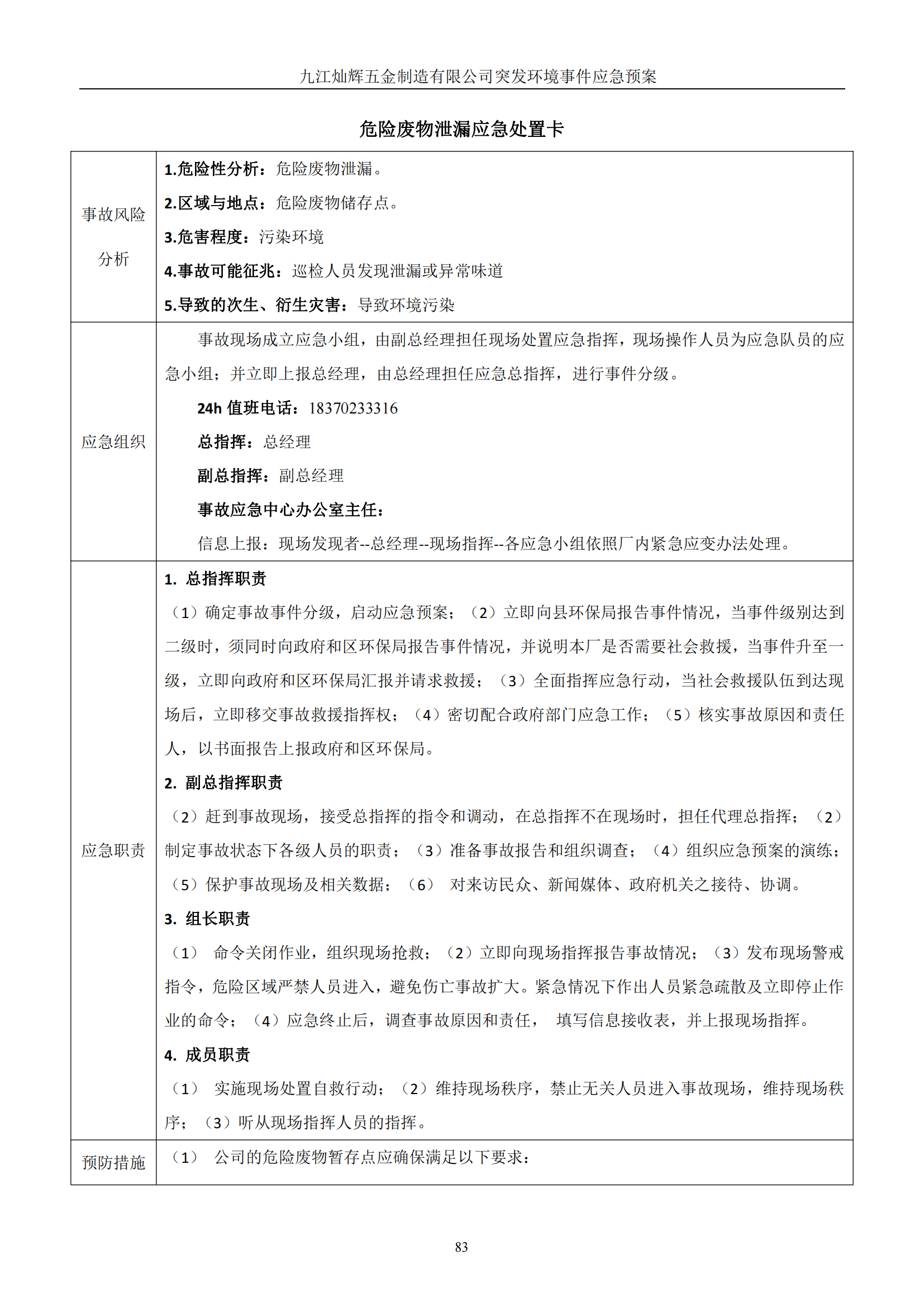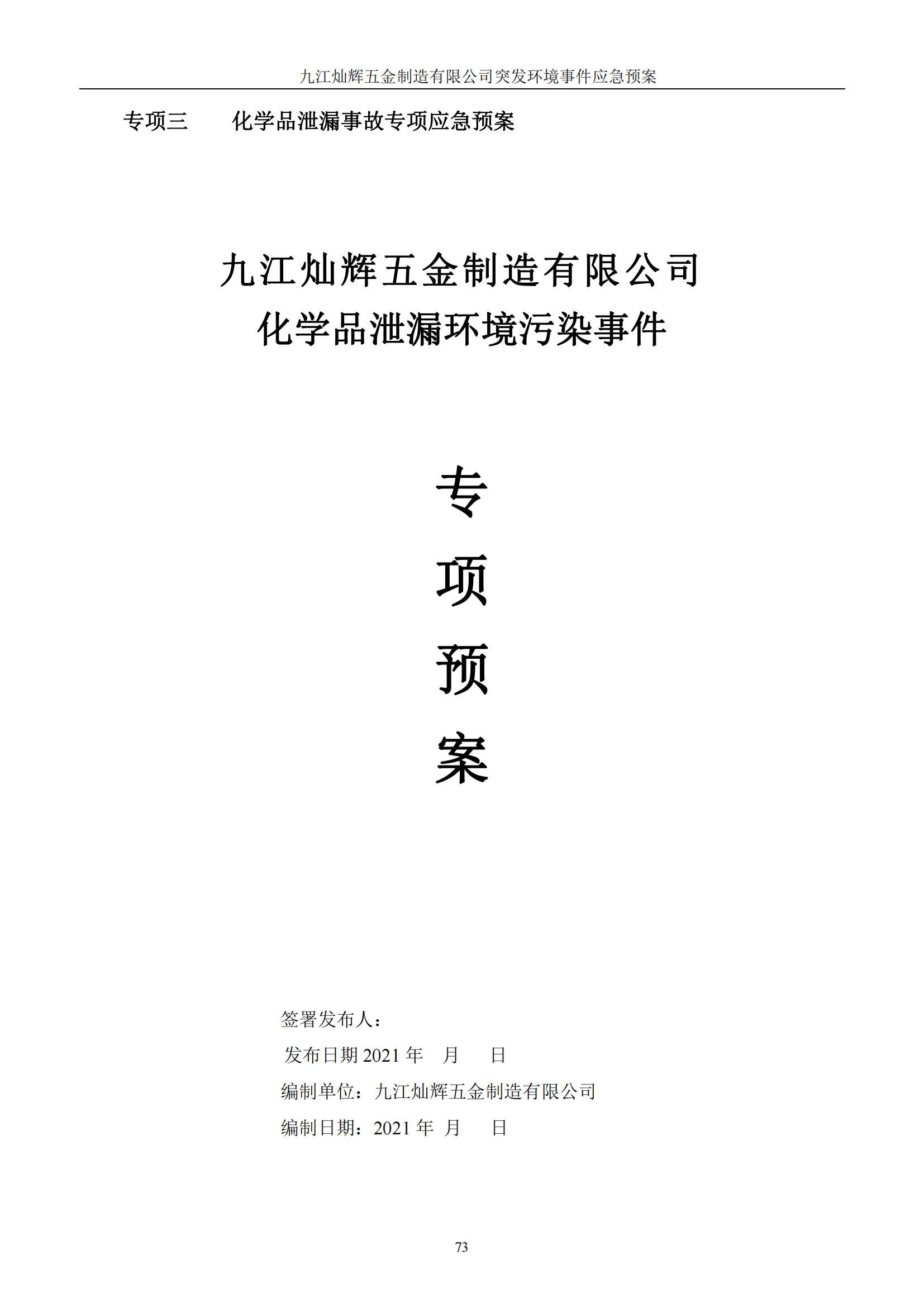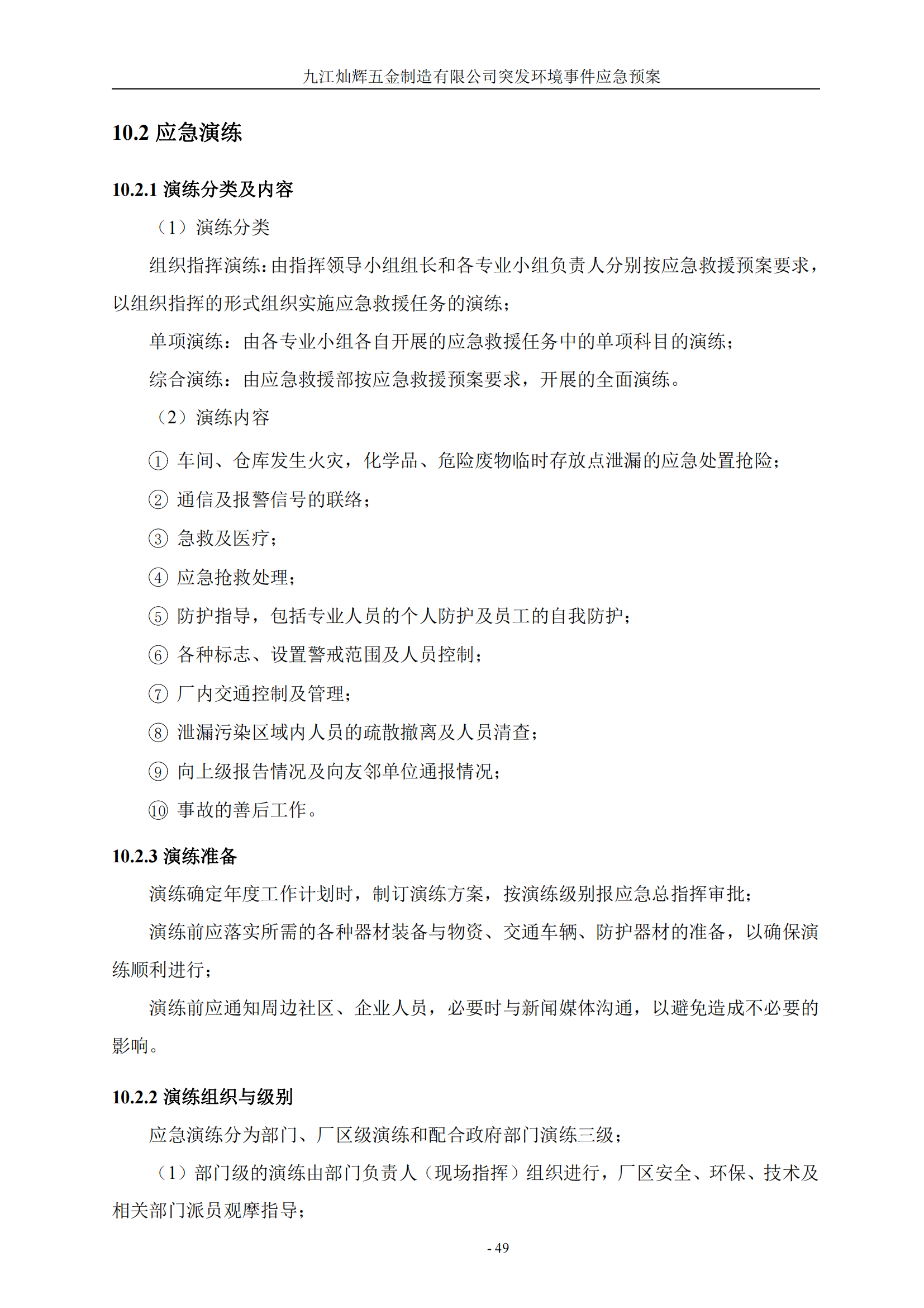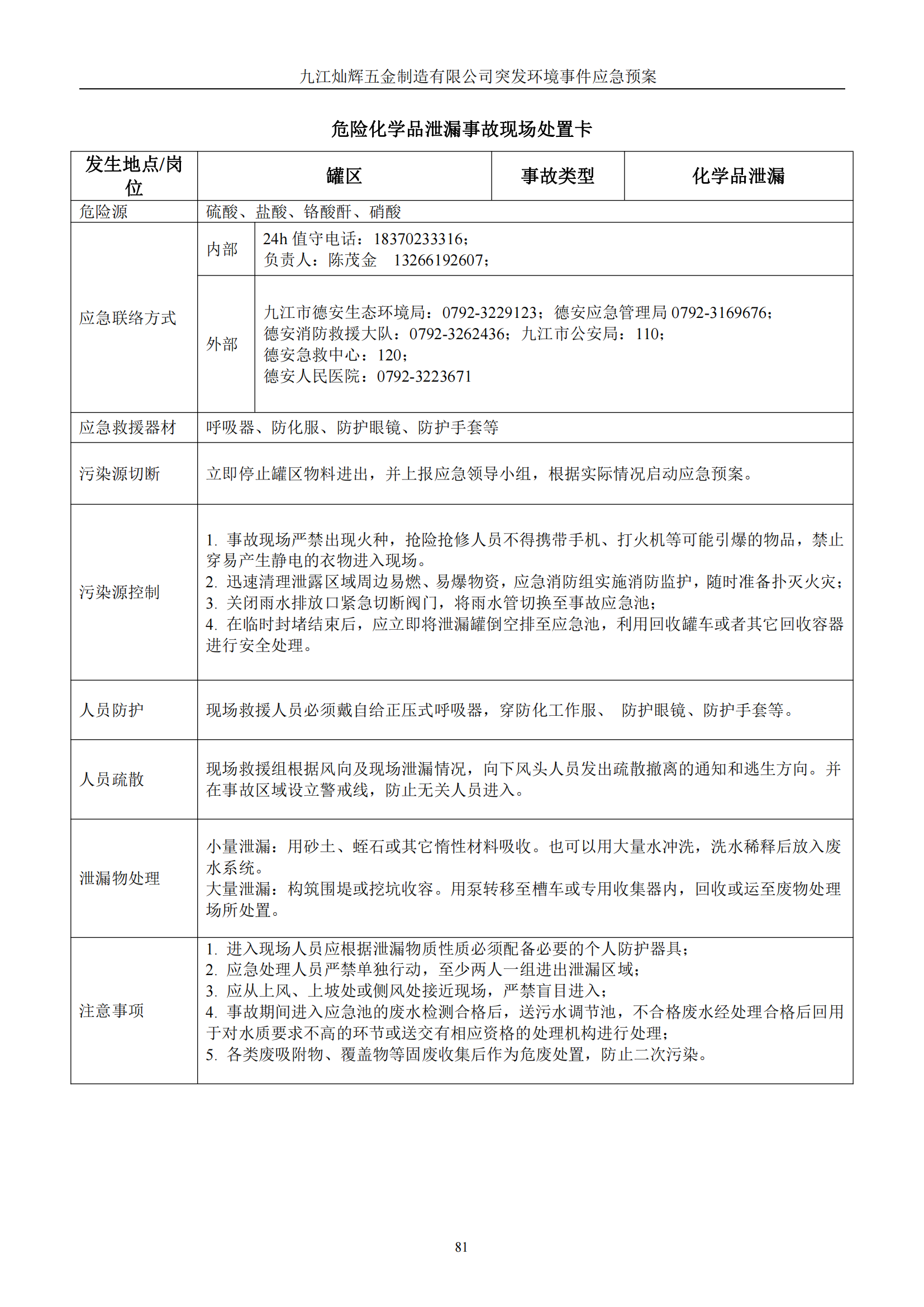 九江灿辉五金制造有限公司应急预案