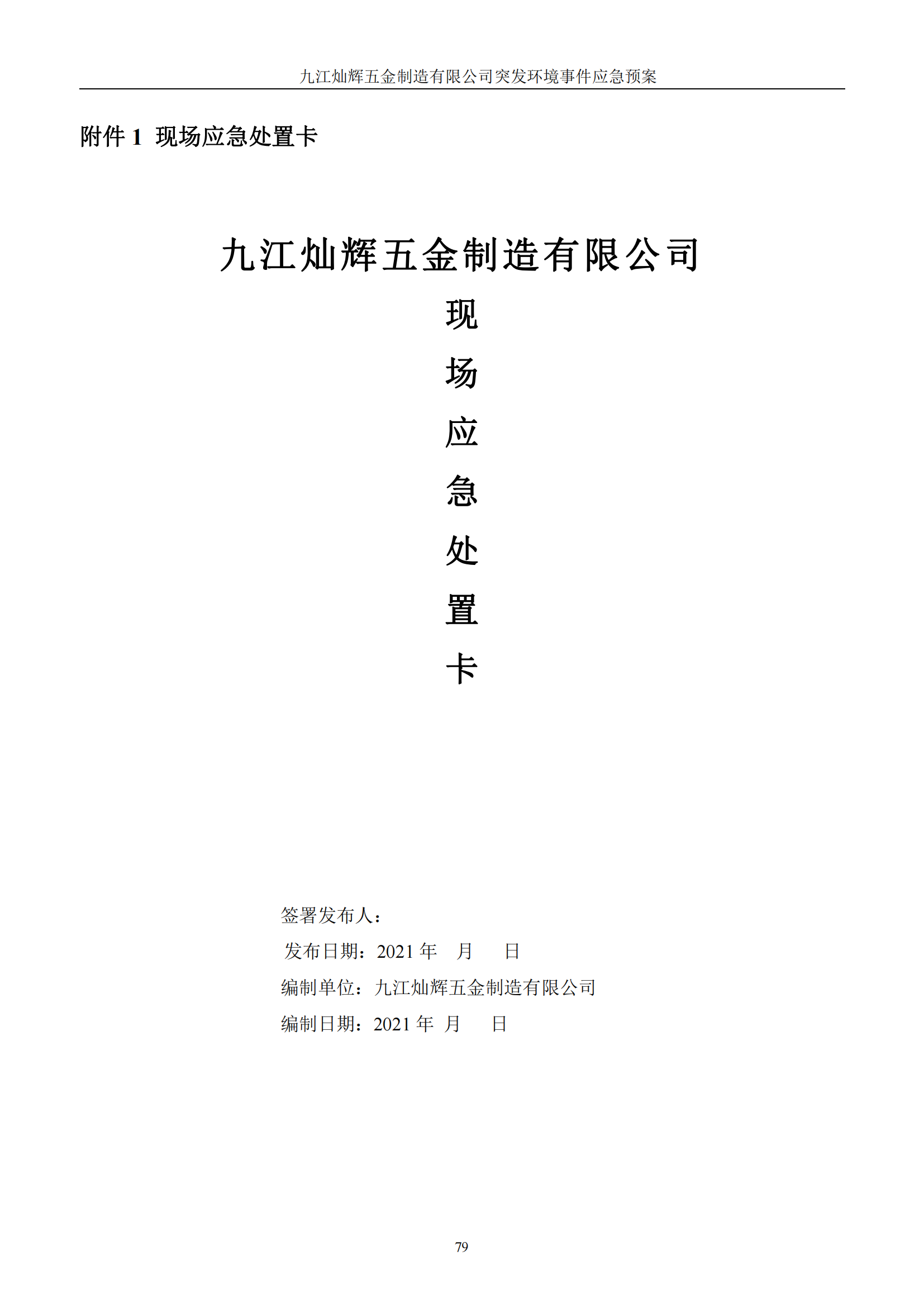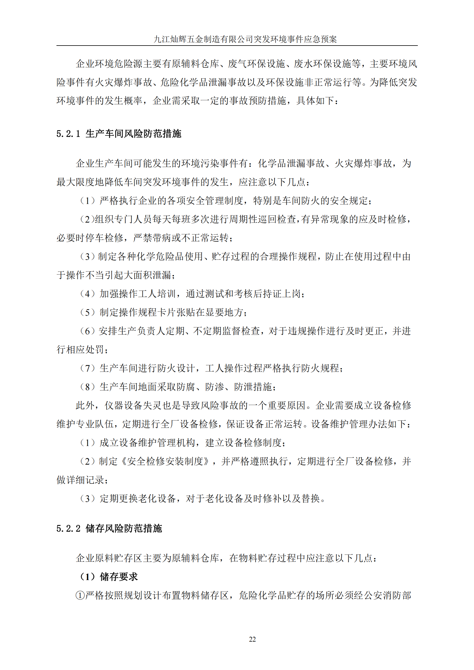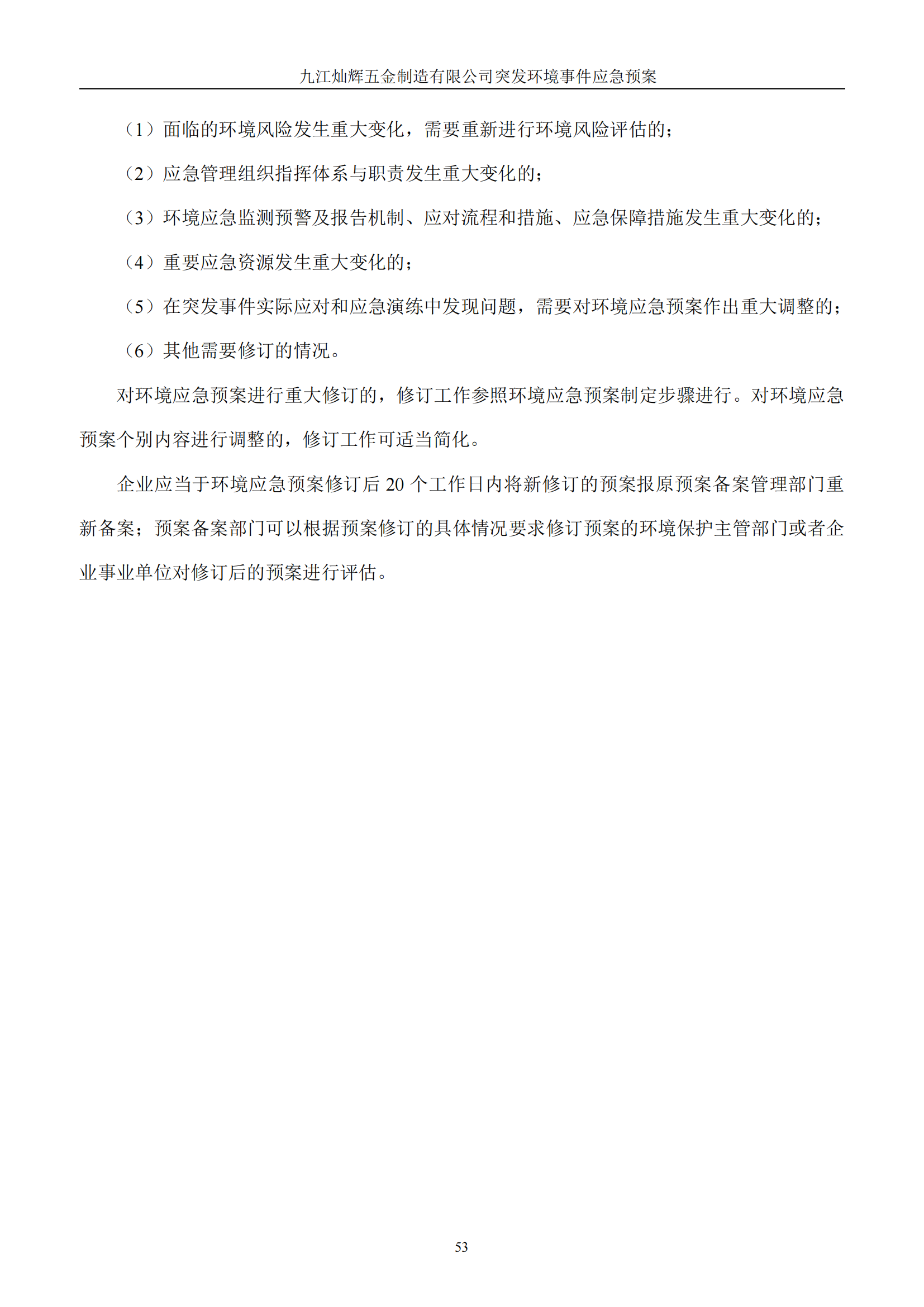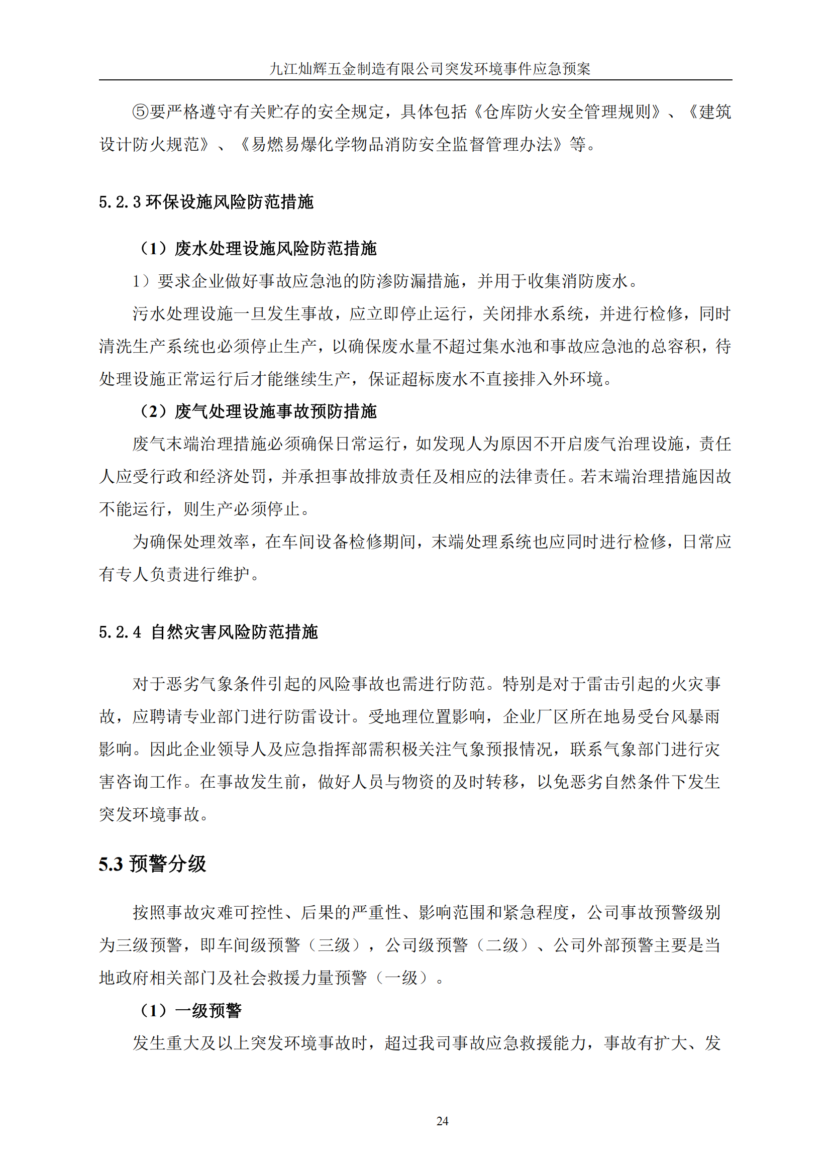 九江灿辉五金制造有限公司应急预案