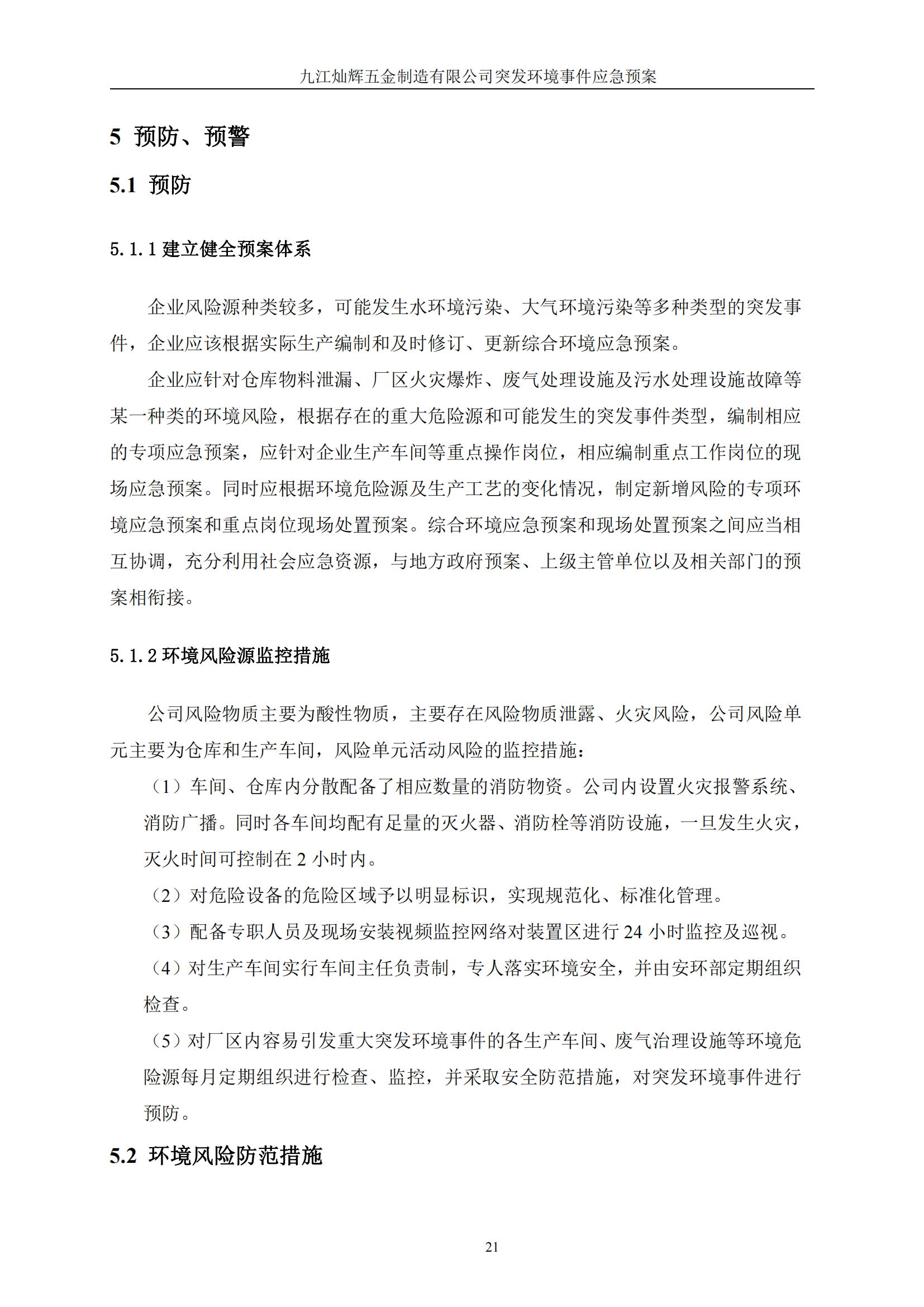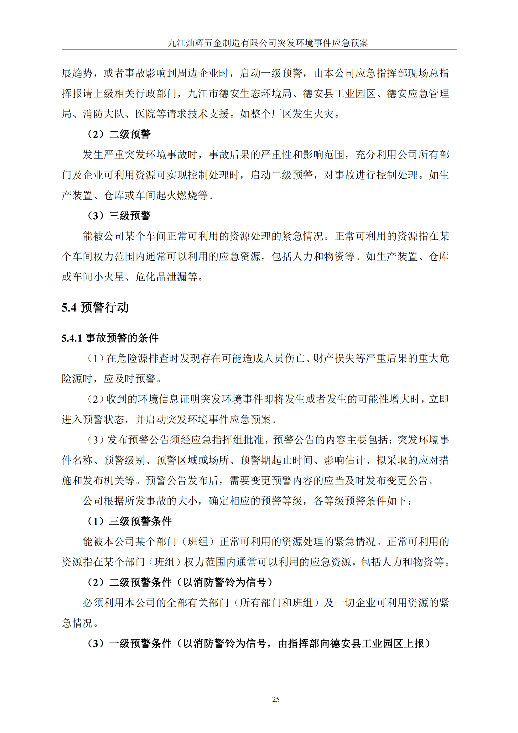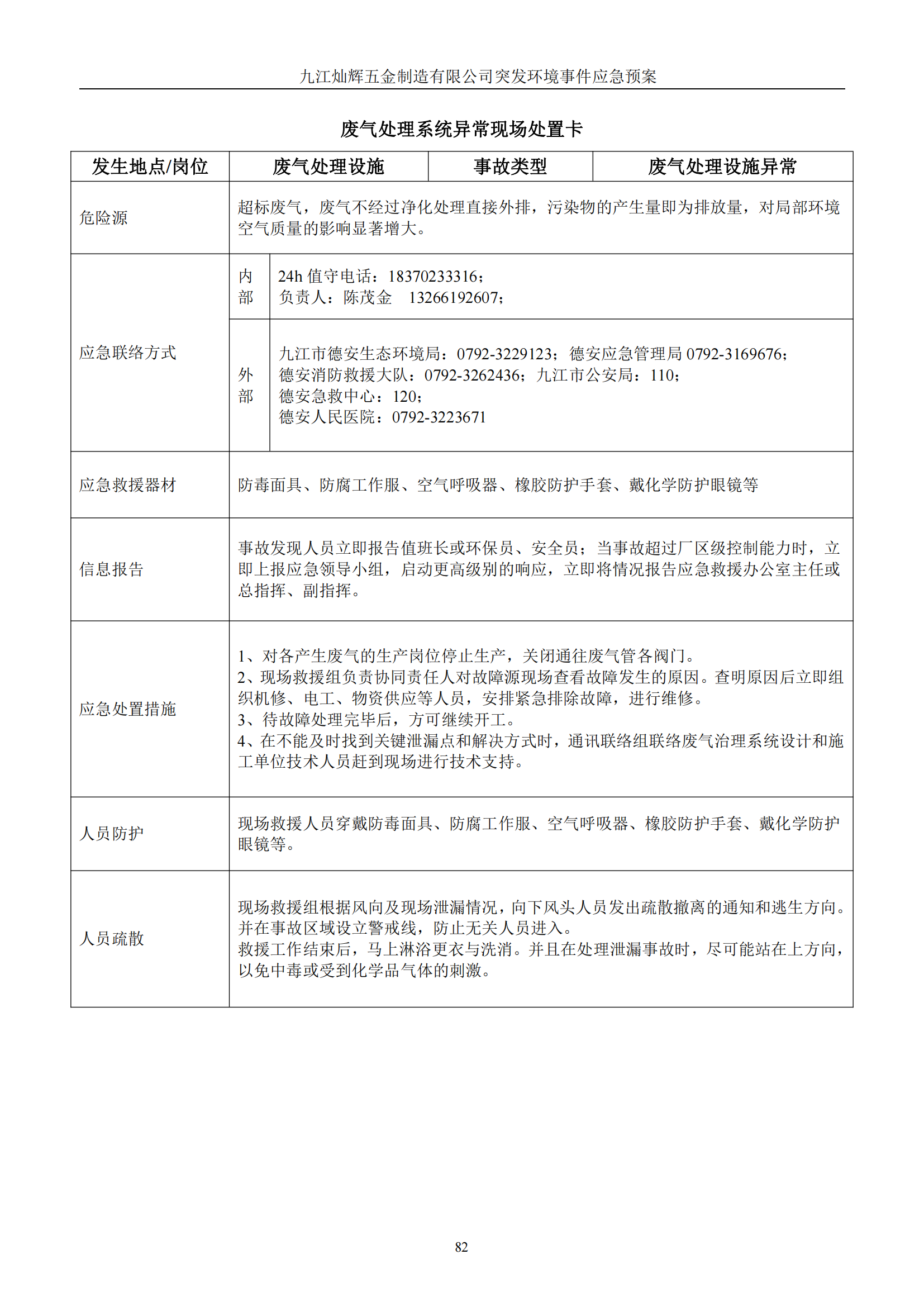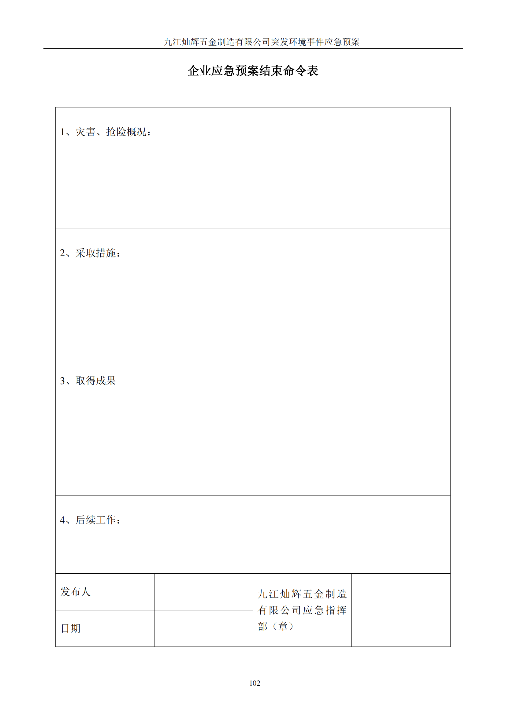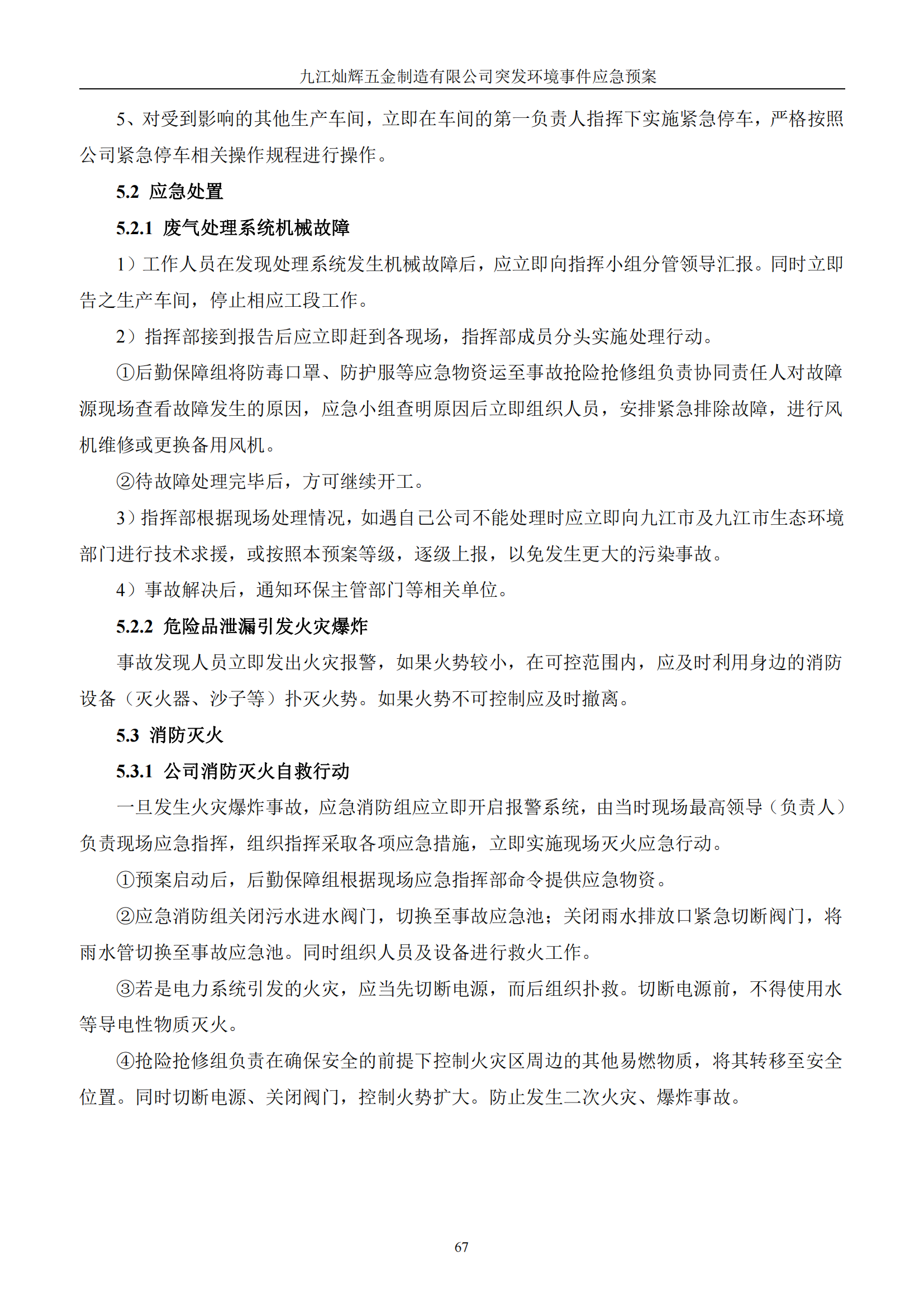 九江灿辉五金制造有限公司应急预案