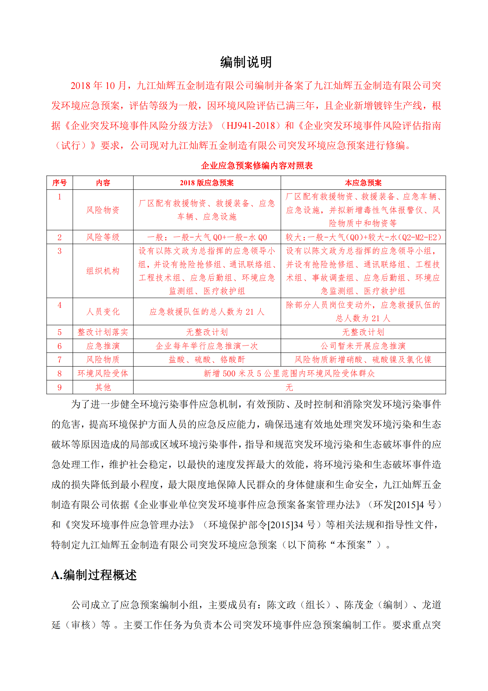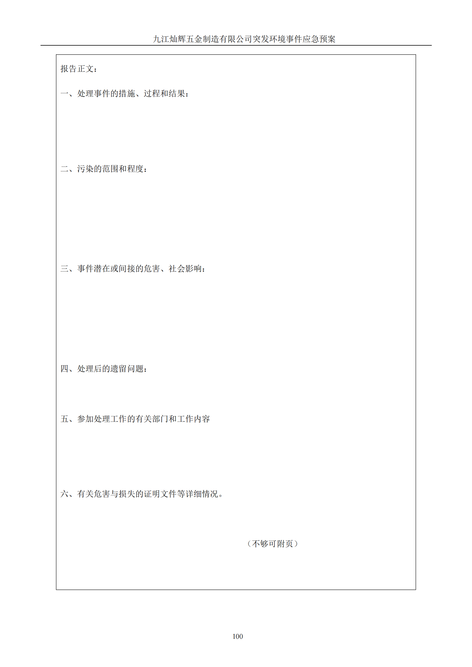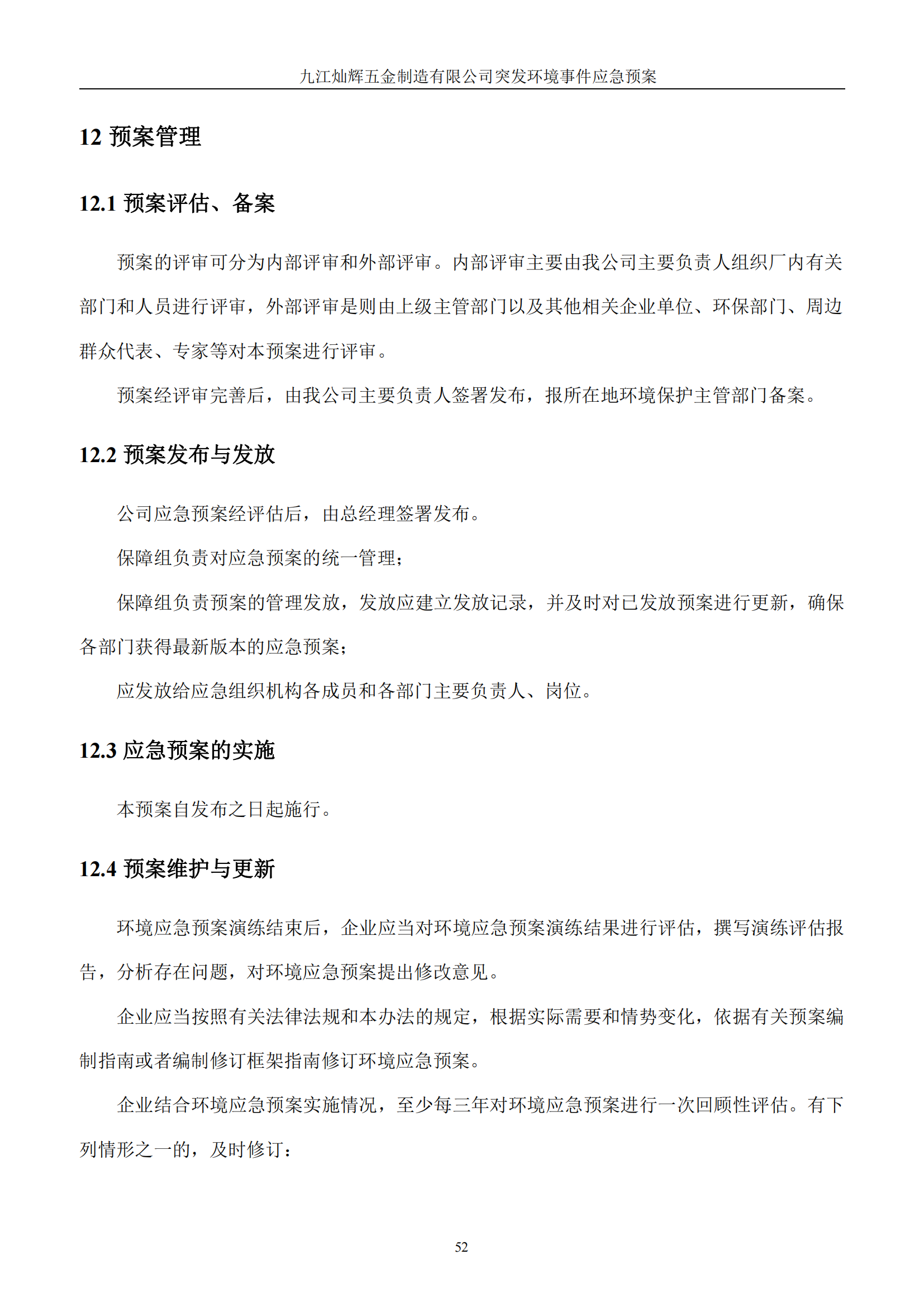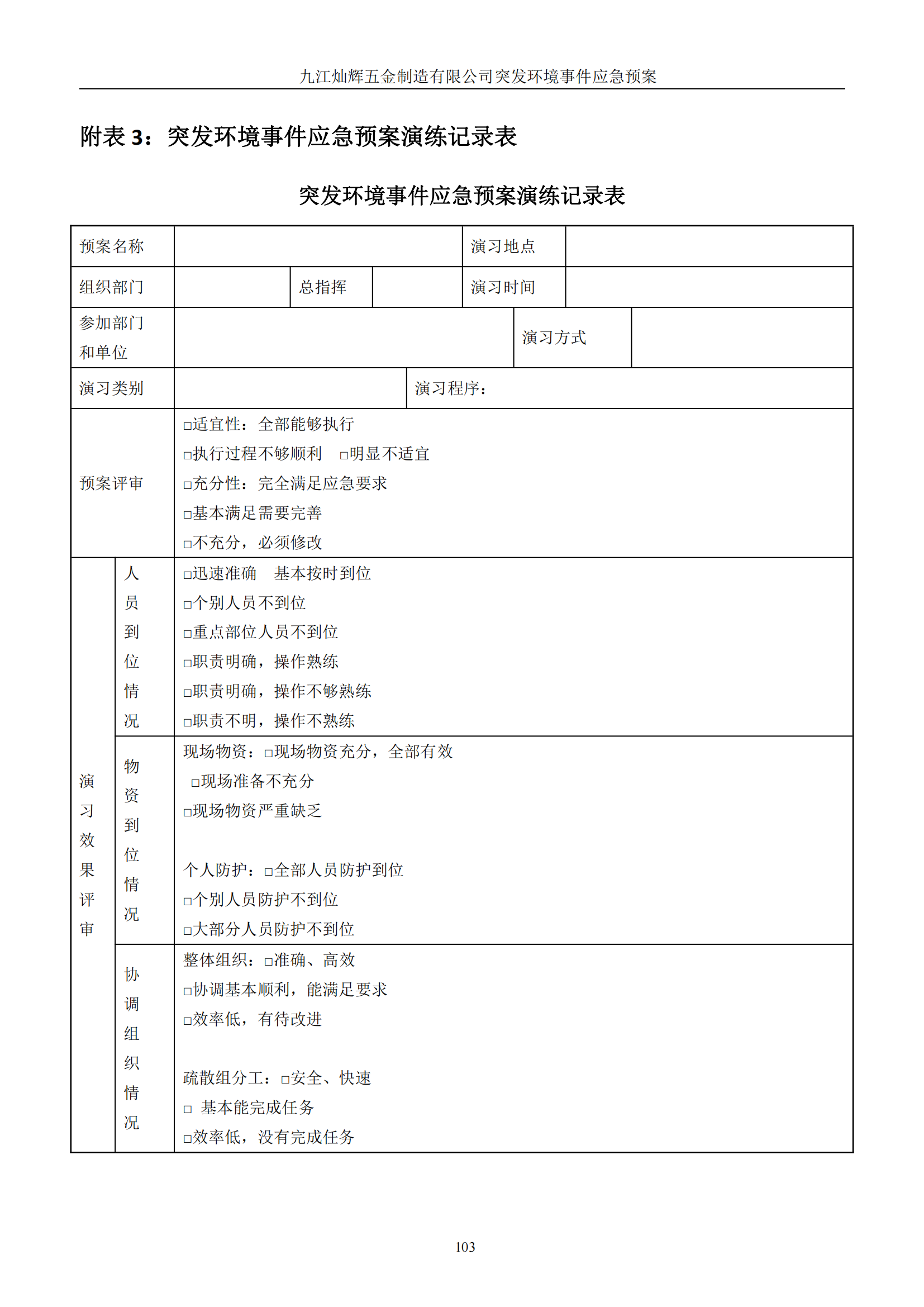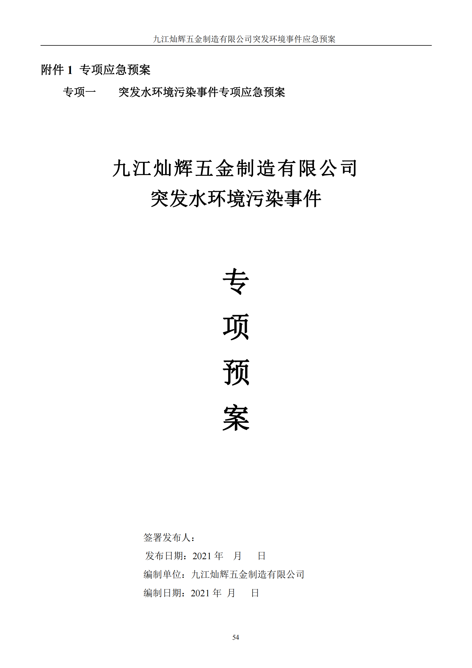 九江灿辉五金制造有限公司应急预案