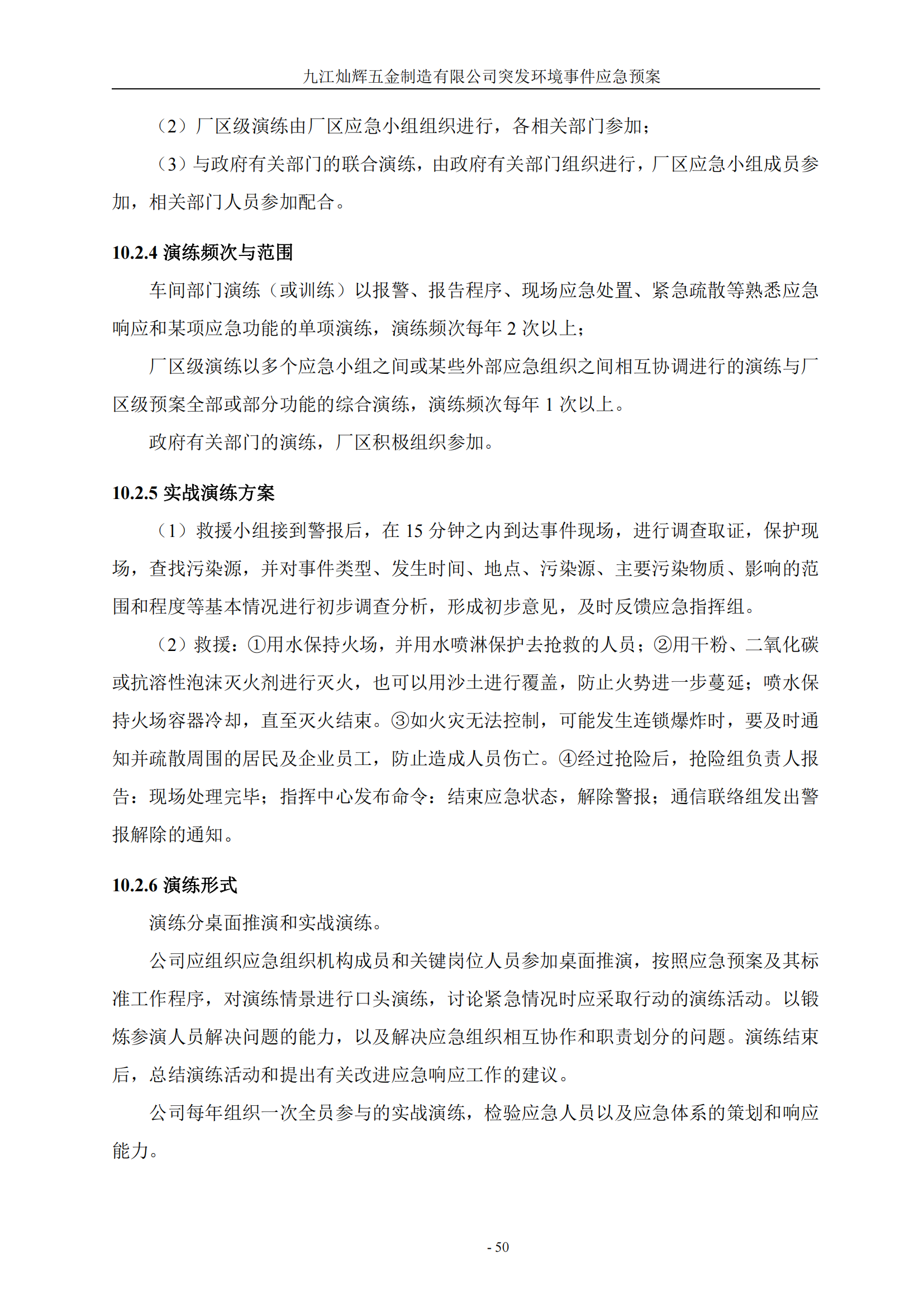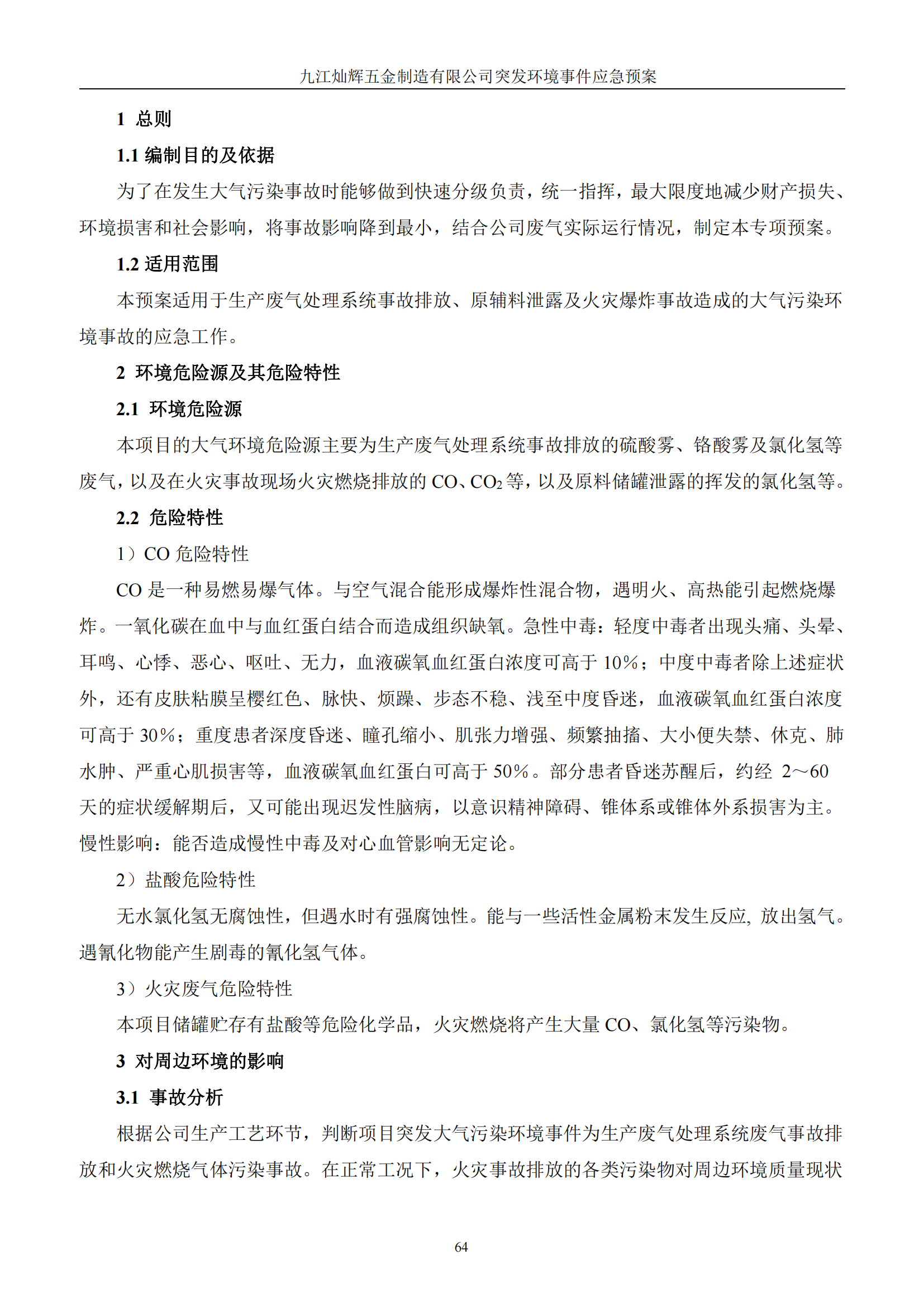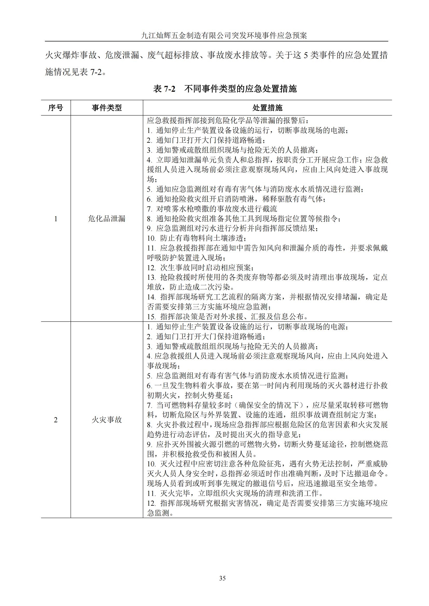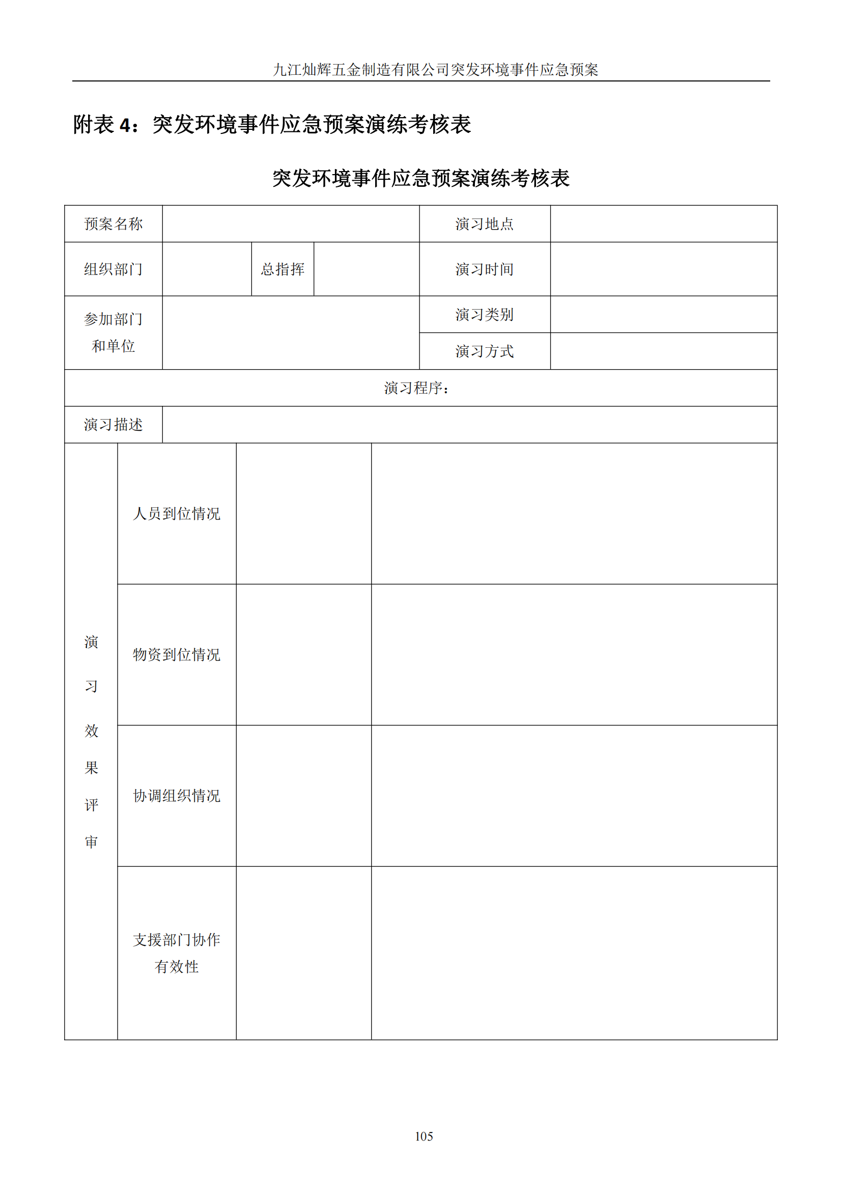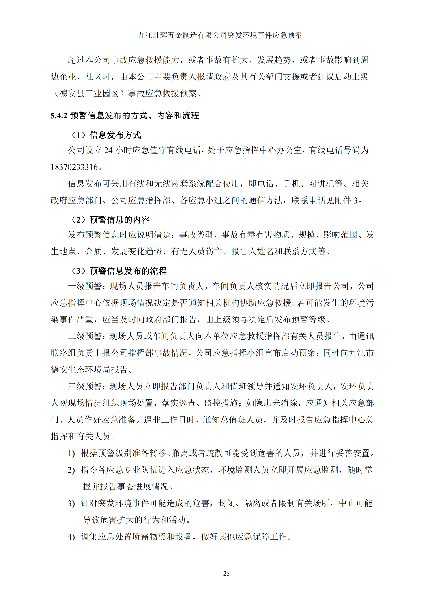 九江灿辉五金制造有限公司应急预案