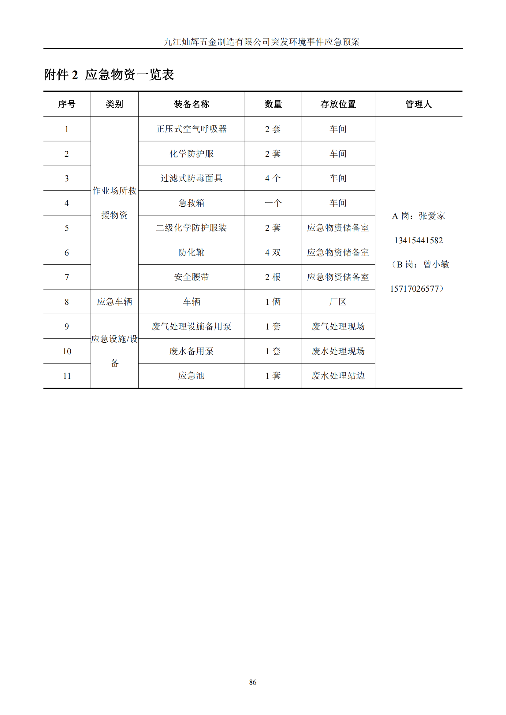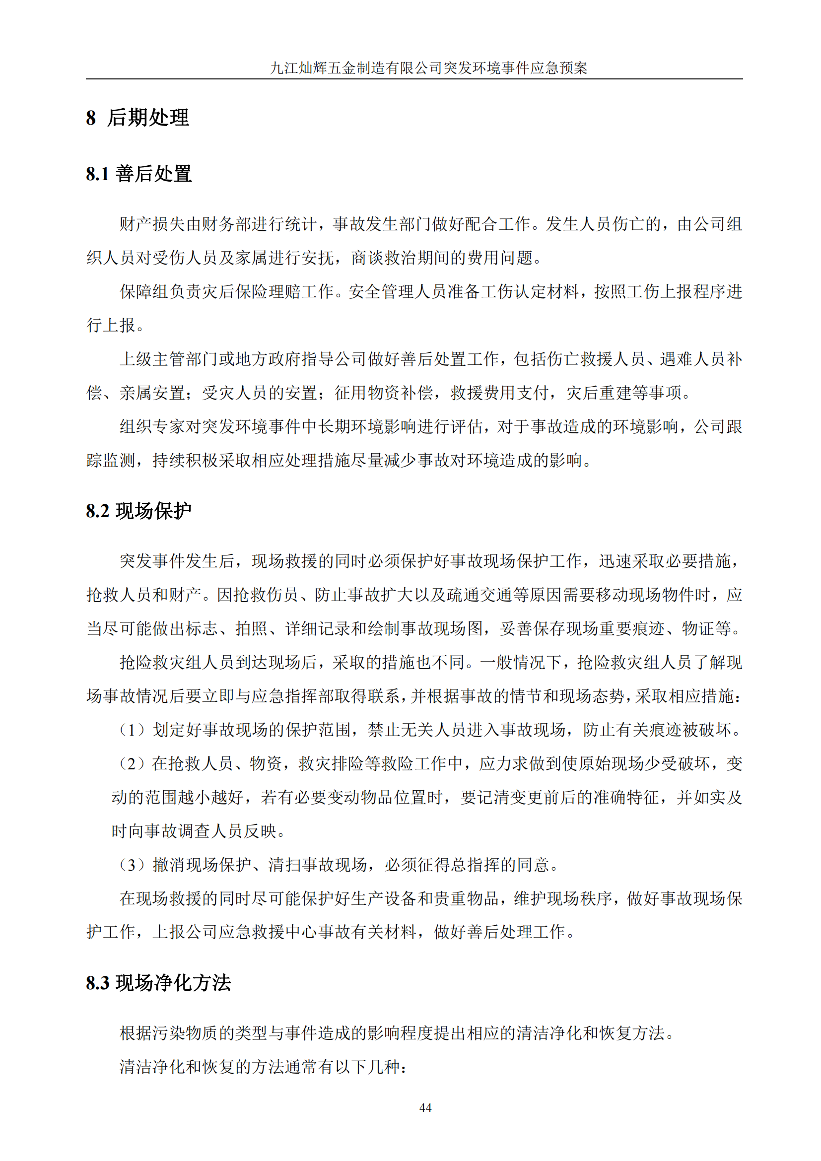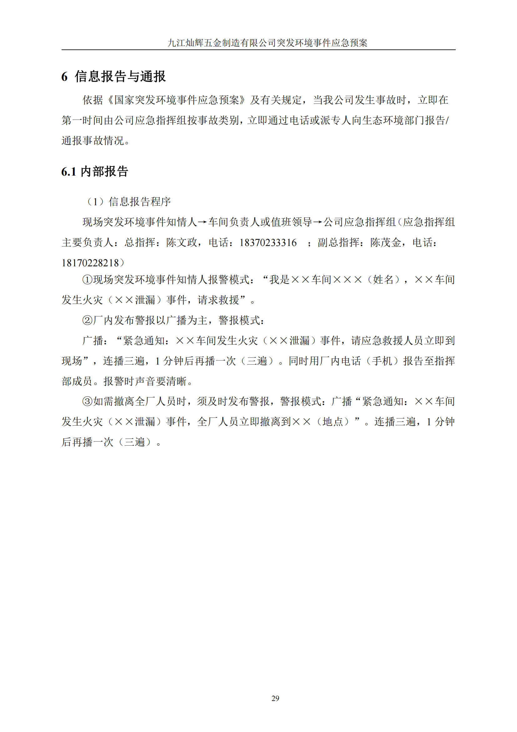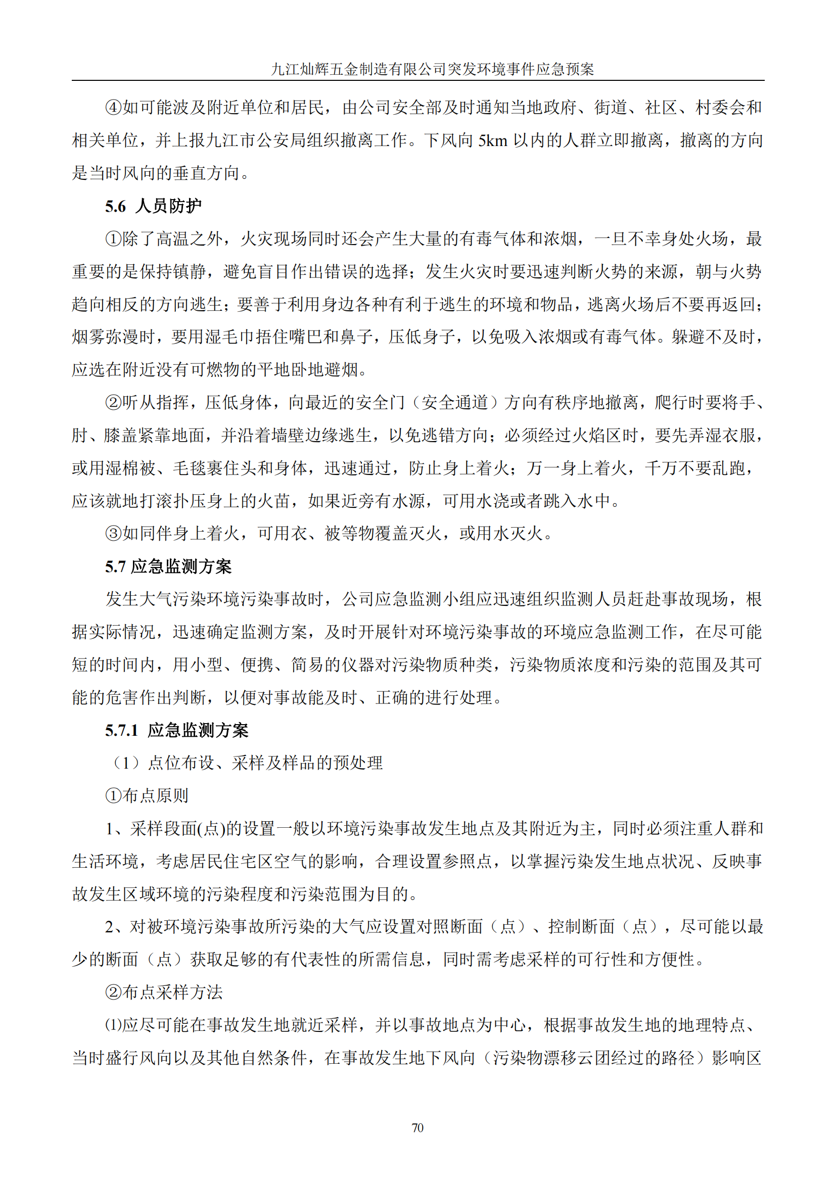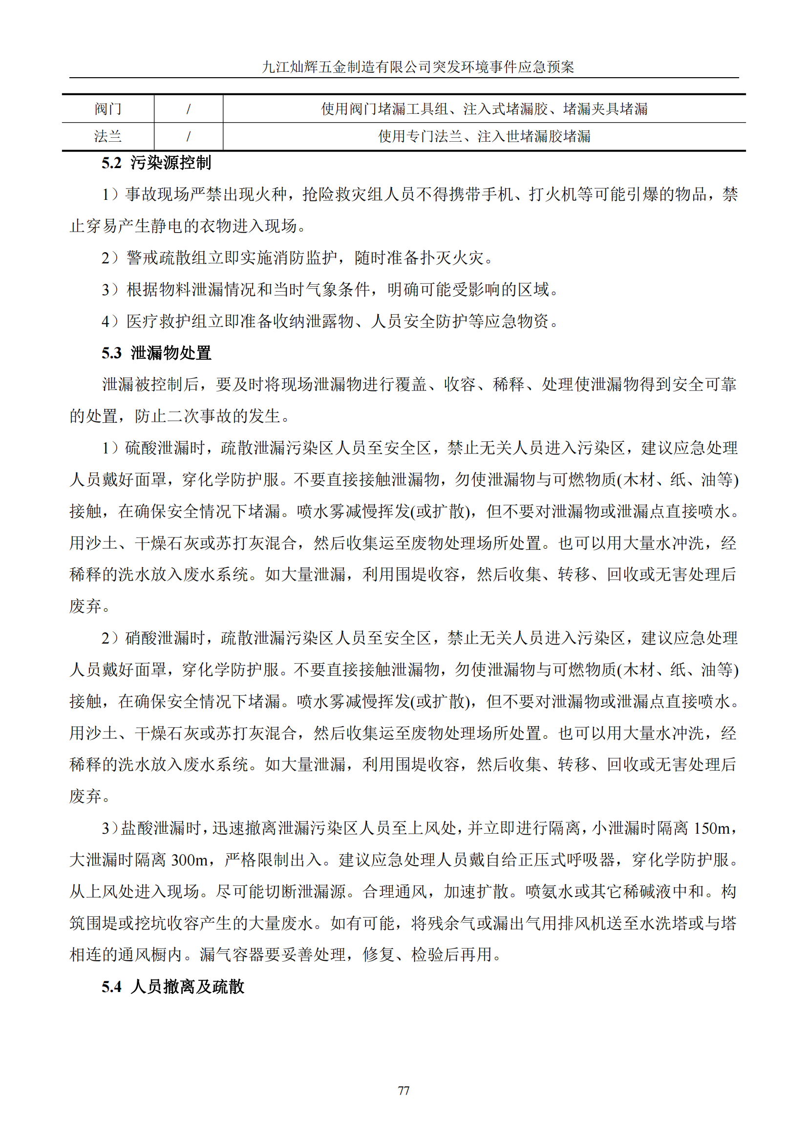 九江灿辉五金制造有限公司应急预案